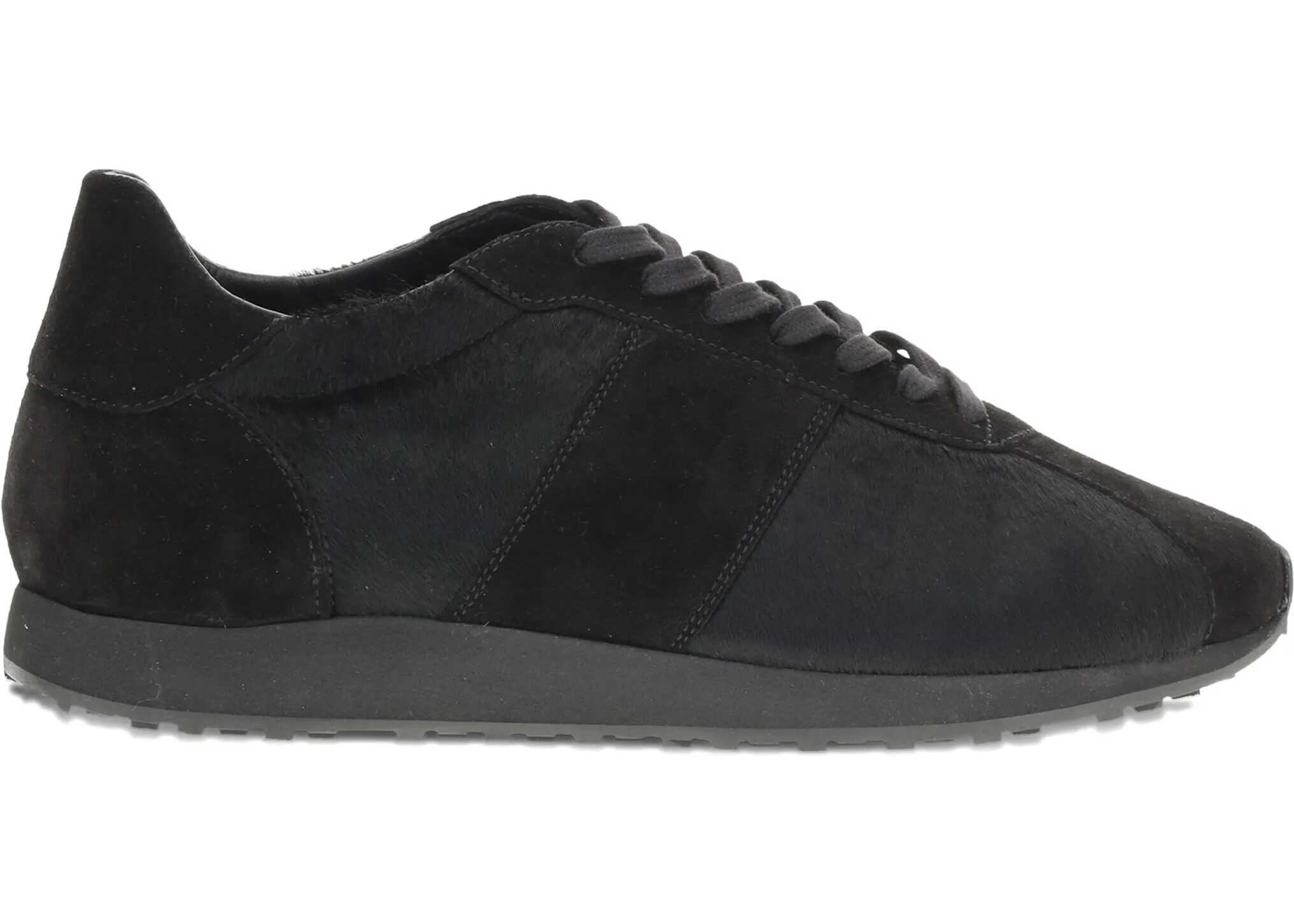 The Row's Mica Sneakers combine elegance and comfort with their black pony skin upper and velvet inserts, which add refined texture. The lace-up closure allows for an adjustable fit, while the rubber sole provides durability and support. The reinforced toe offers added durability and protection, making these sneakers a perfect blend of sophisticated style and practicality.