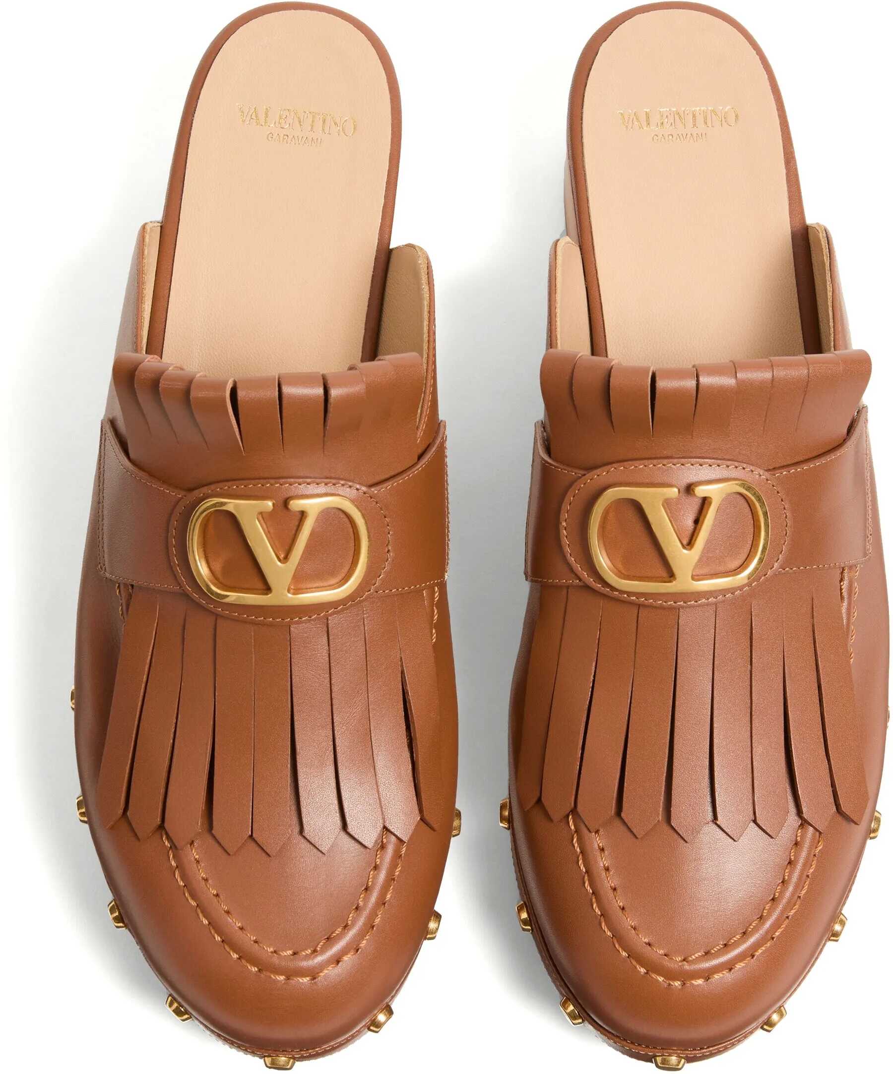 Valentino Garavani's leather Mules is an elegant reinterpretation of the clog, perfect for those seeking a mix of comfort and style. The model features a round toe that ensures a comfortable fit, while the iconic three-dimensional VLogo plaque applied to the front adds a distinctive and luxurious detail. The wooden platform and heel lend a natural and elegant look, while the logoed insole reinforces the brand's identity.