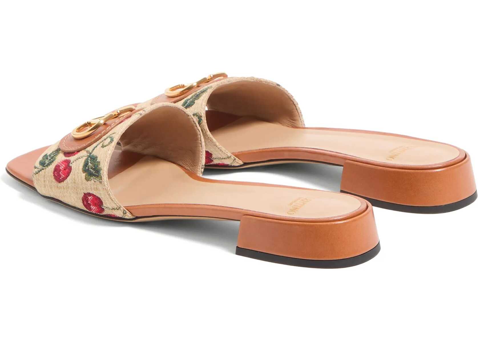 Valentino Garavani's fabric and leather Sandals are a fresh and sophisticated take on summer design. The jacquard band with cherry motifs adds a playful and lively touch, while the metal plaque with the iconic VLogo applied to the front lends an element of luxury and recognition to the model. The logo-embossed insole completes the design, lending additional distinctive detail and impeccable comfort.