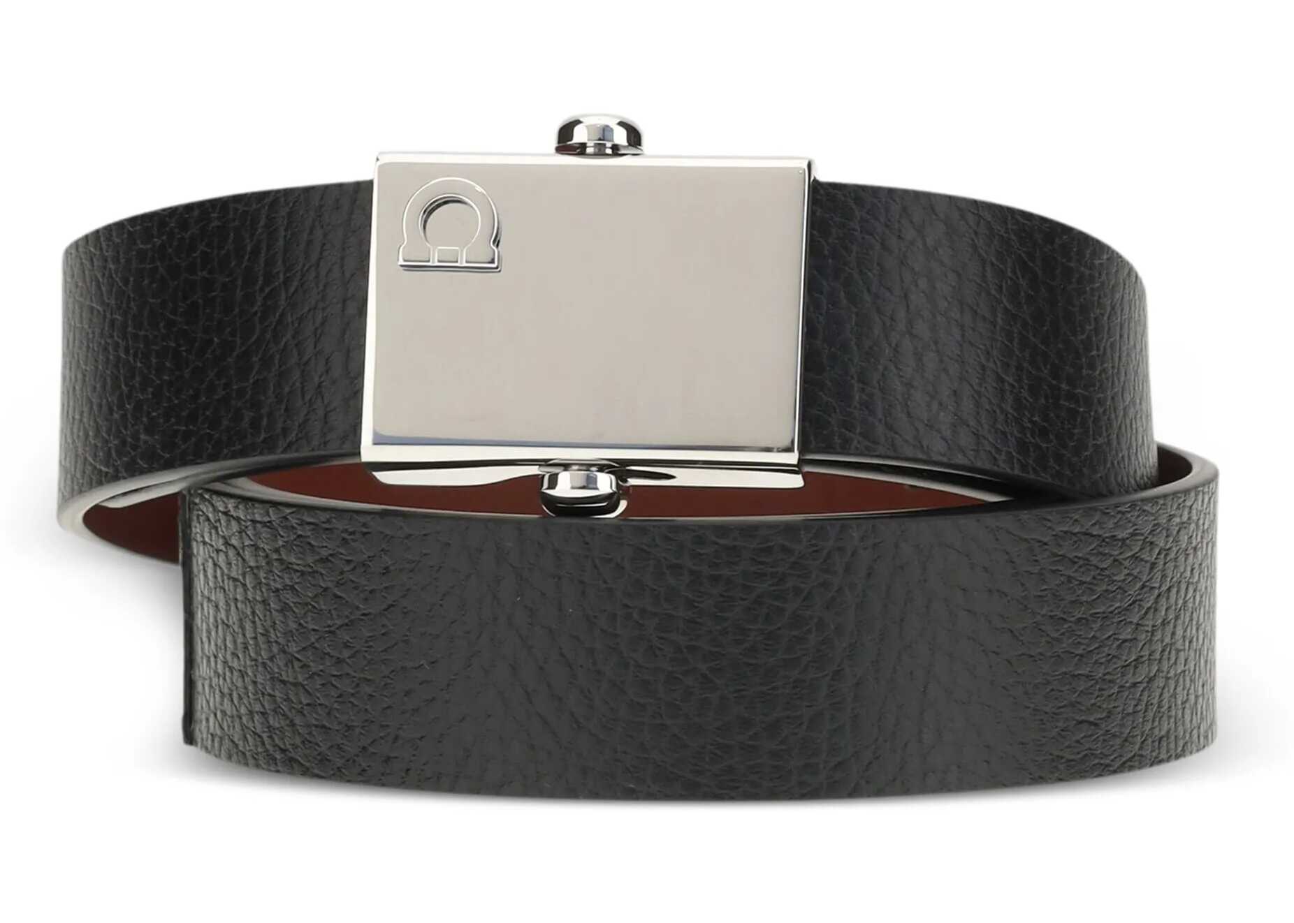 Ferragamo's Belt is a reversible, two-tone design with a contrasting grained leather side that adds texture and sophistication. The closure is complemented by a flat buckle with the small embossed Gancini, the brand's distinctive symbol. With a height of 3 cm, this belt combines elegance and versatility, making it perfect for completing different looks.