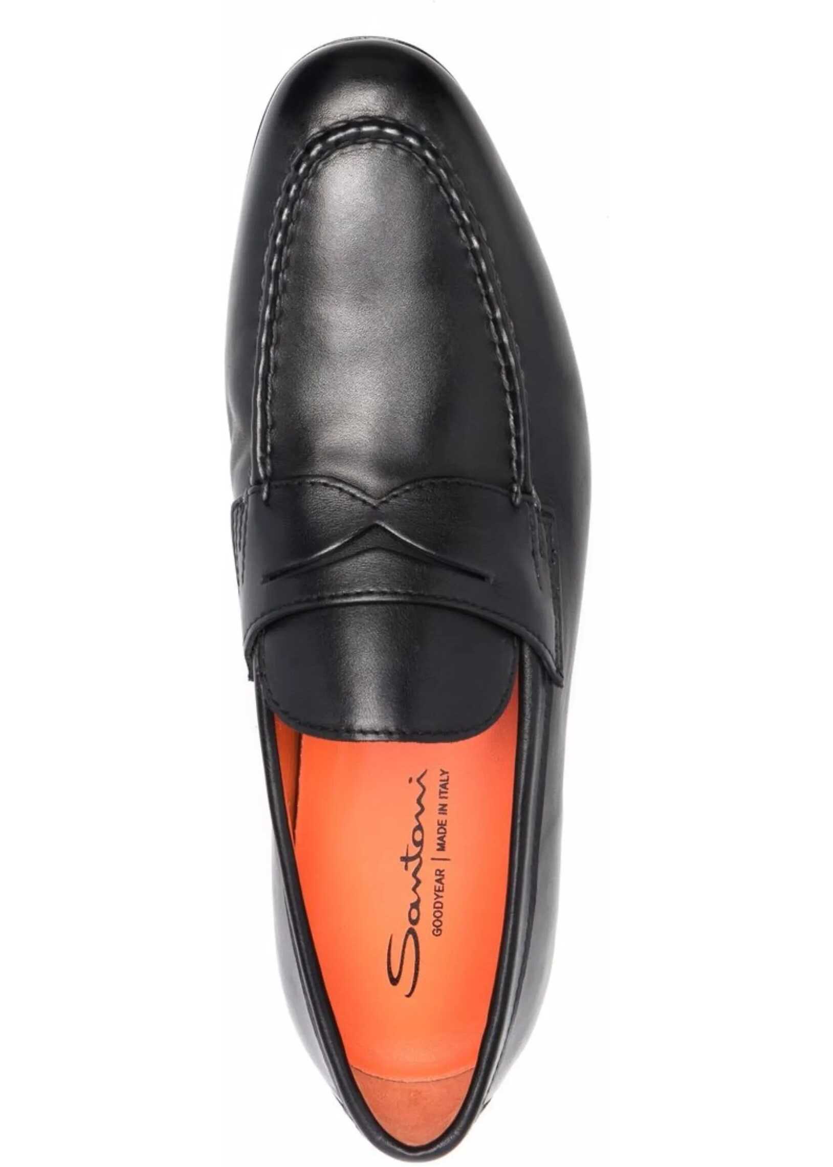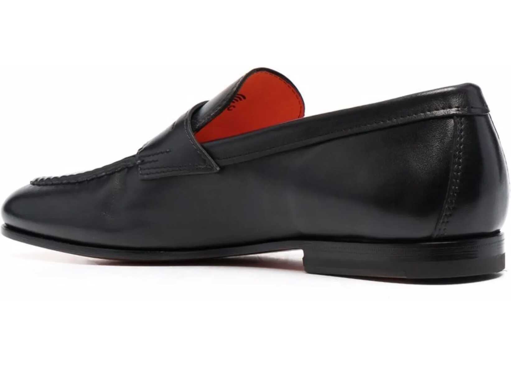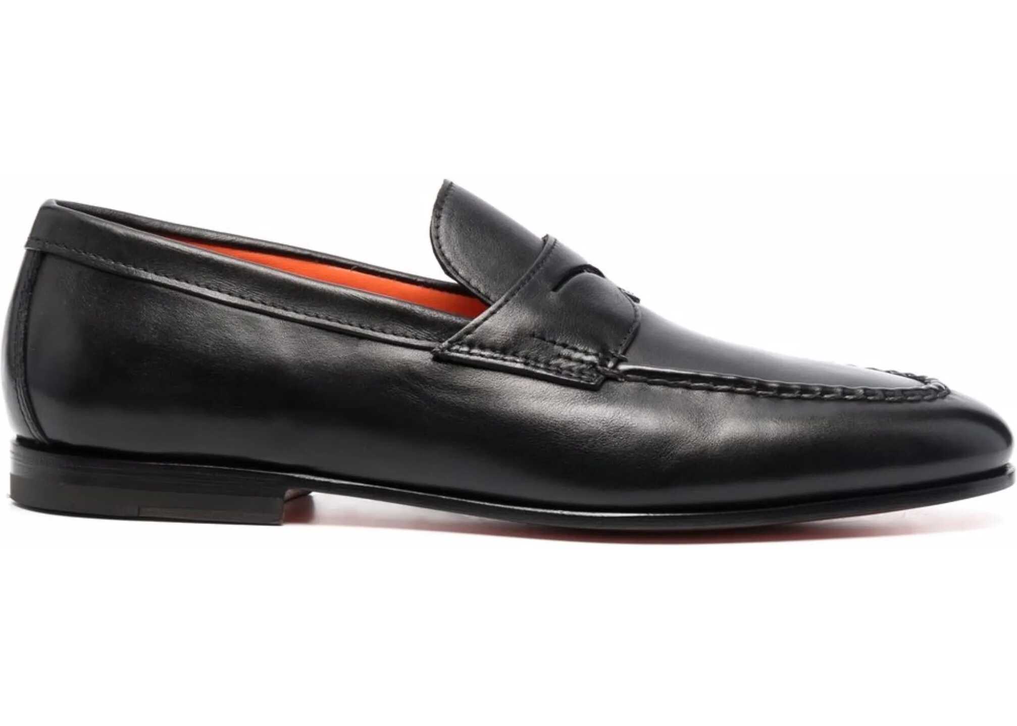 Santoni's leather Loafers are a timeless classic, featuring a regular sole and round toe for comfort and elegance. An exposed stitching tray adds a distinctive detail, while the inner lining in iconic orange leather reflects the brand's exclusive design. The flexible Goodyear construction and leather bottom with rubber half heel offer durability and comfort, complemented by the Santoni logo stamped on the insole. A loafer that combines tradition and quality craftsmanship.