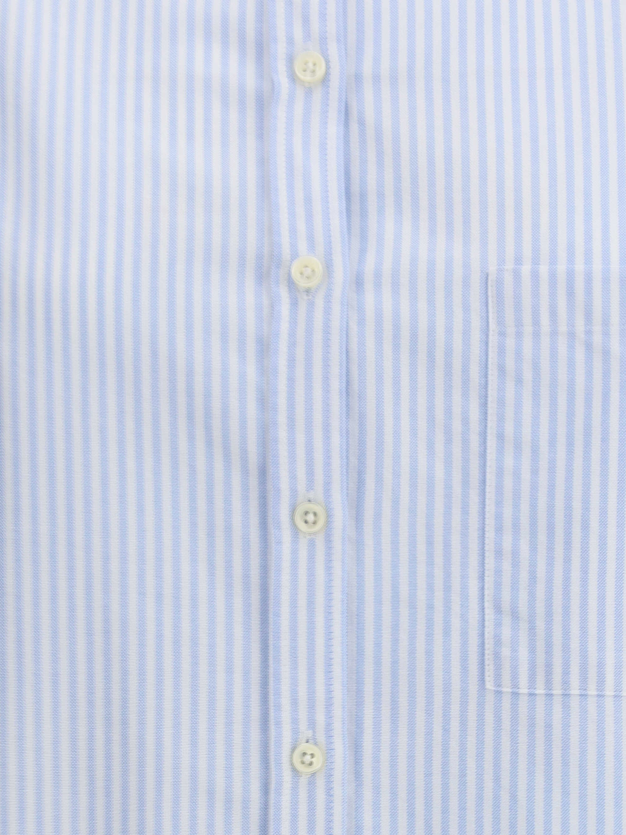 Deperlu's cotton Oxford Shirt is a versatile and sophisticated garment made of high-quality cotton to provide comfort and freshness. The classic collar lends a touch of elegance, while the front button closure makes the shirt practical and easy to wear. The appliquéd welt pocket on the front adds a functional and stylish element, while the adjustable button cuffs allow you to adjust the fit. The striped pattern gives the garment a dynamic and modern look, making it perfect for a formal or casual-chic look.