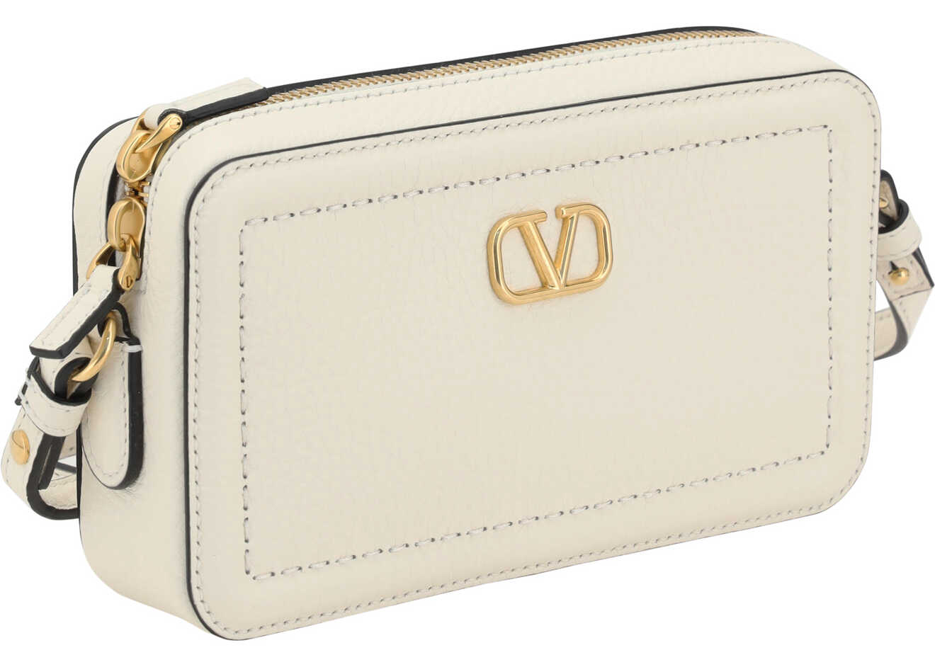The Valentino Garavani Alltime Shoulder Bag is an accessory with a sophisticated and modern design, made of grained leather that enhances its texture and durability. The zipper closure provides security, while the brand's iconic logo plaque, elegantly applied on the front, lends a distinctive and classy touch. The flat, adjustable shoulder strap allows the bag to be adapted to different needs, offering comfort and practicality without sacrificing style. Perfect for completing any look with sophistication, it is a true symbol of timeless elegance.