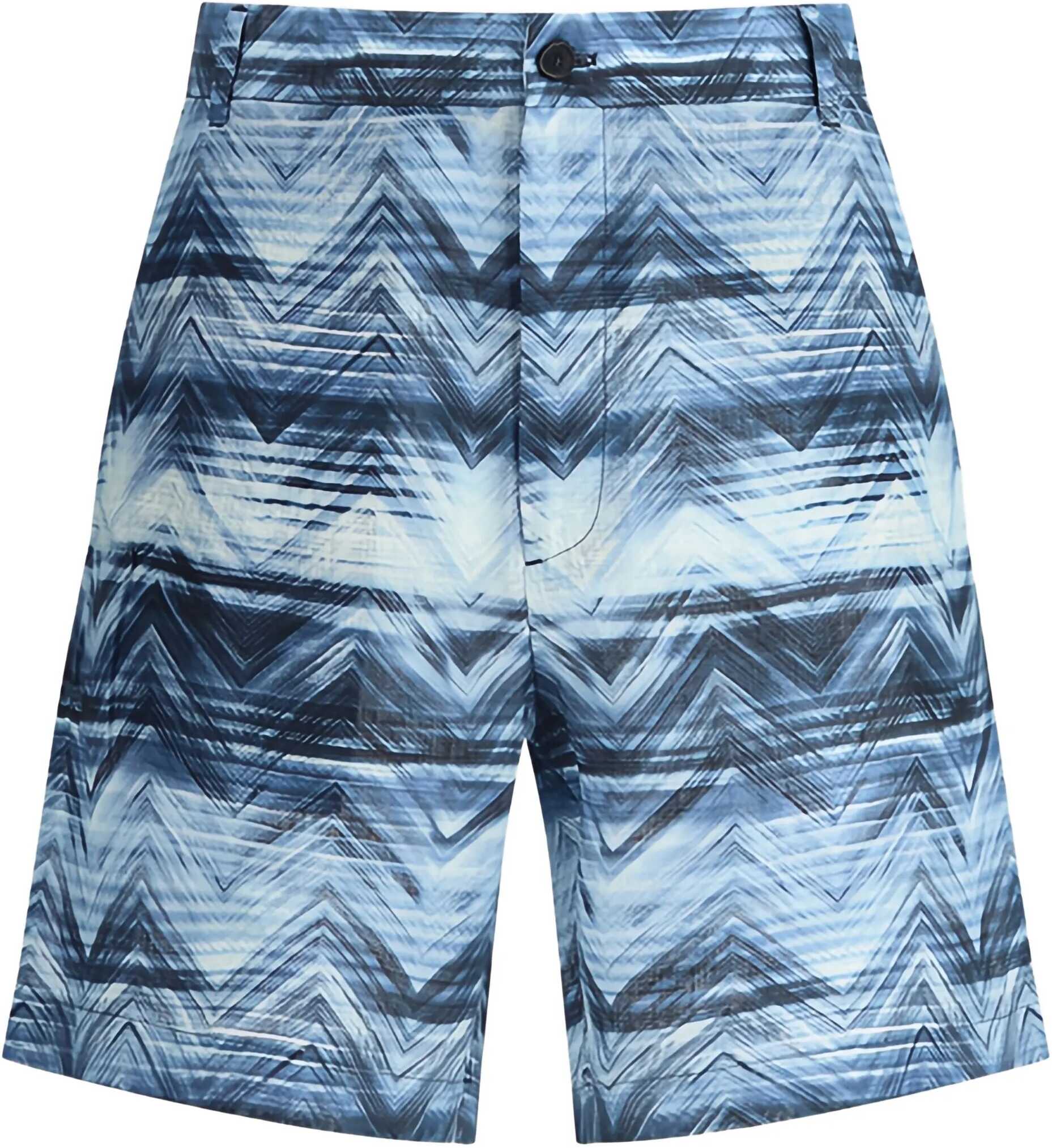 Missoni's Shorts feature the iconic shaded ZigZag pattern, giving the garment a distinctive and vibrant touch. The front button and zipper closure, along with belt loops at the waist, add practicality and style. Two side welt pockets and a back pocket complete the design for a stylish and functional look ideal for summer.