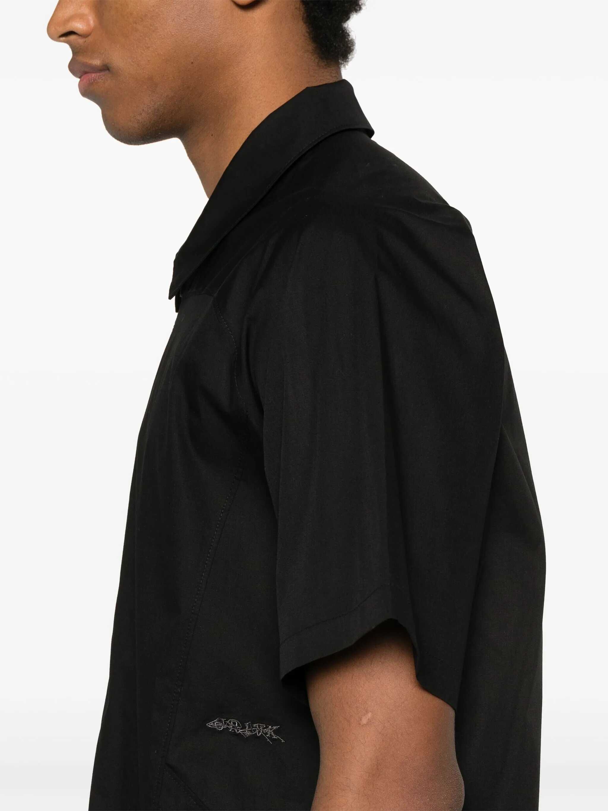 Cotton Shirt by GR10K, short-sleeved design with a classic collar for a smart casual look. It features two welt pockets on the front for a practical and functional touch, while the double-slider zipper closure on the front adds a modern detail. The iconic monogram embroidered on the front completes the design, giving it a distinctive and recognizable brand touch