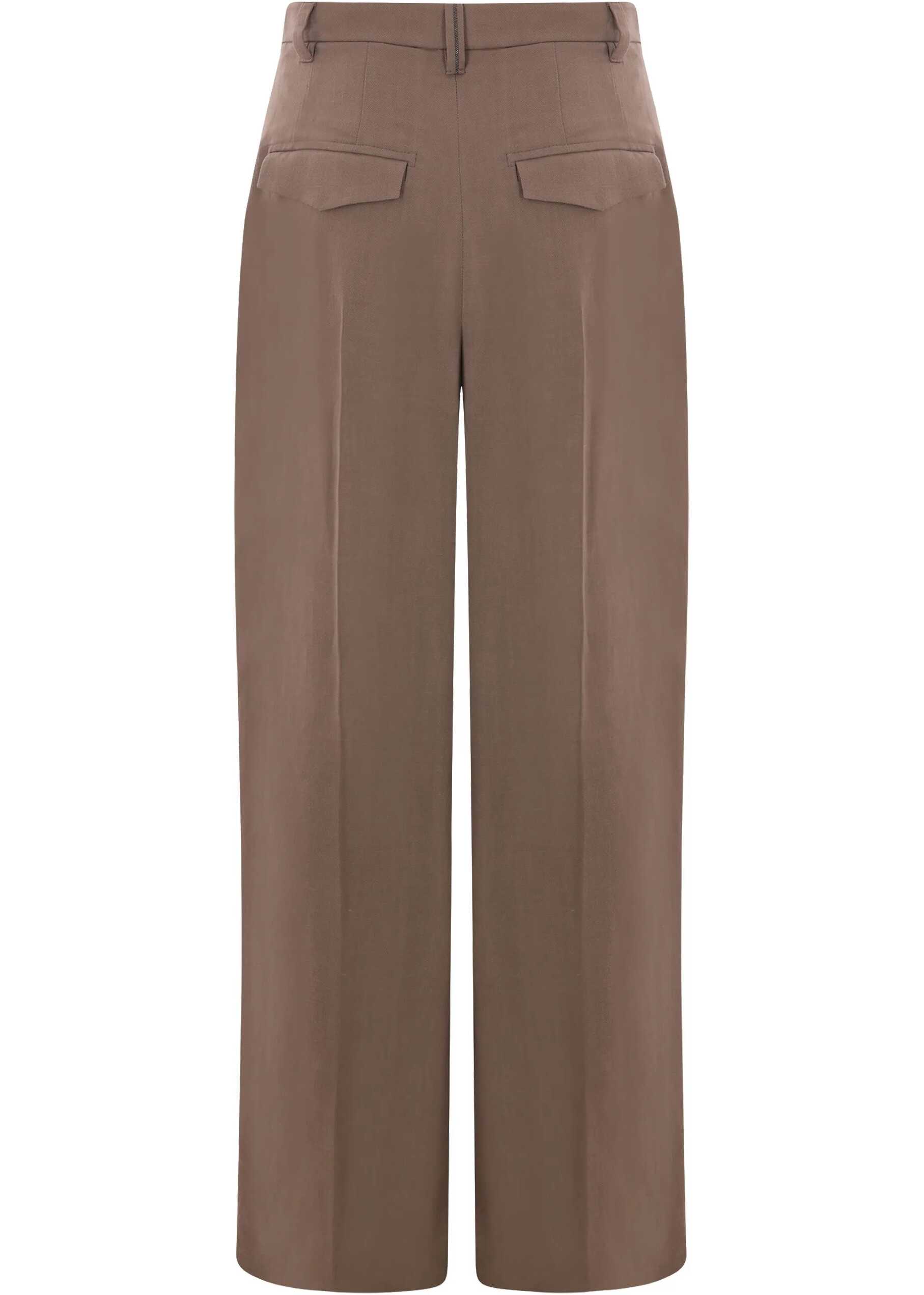 Wide leg Pants by Brunello Cucinelli feature a front zipper and hook-and-eye closure for a sleek and practical fit. Belt loops on the waistband allow you to add a personal touch, while the two side welt pockets offer functionality and style. The wide, flowing design of the palazzo pants lends a sophisticated, modern look, ideal for formal or casual-chic occasions.