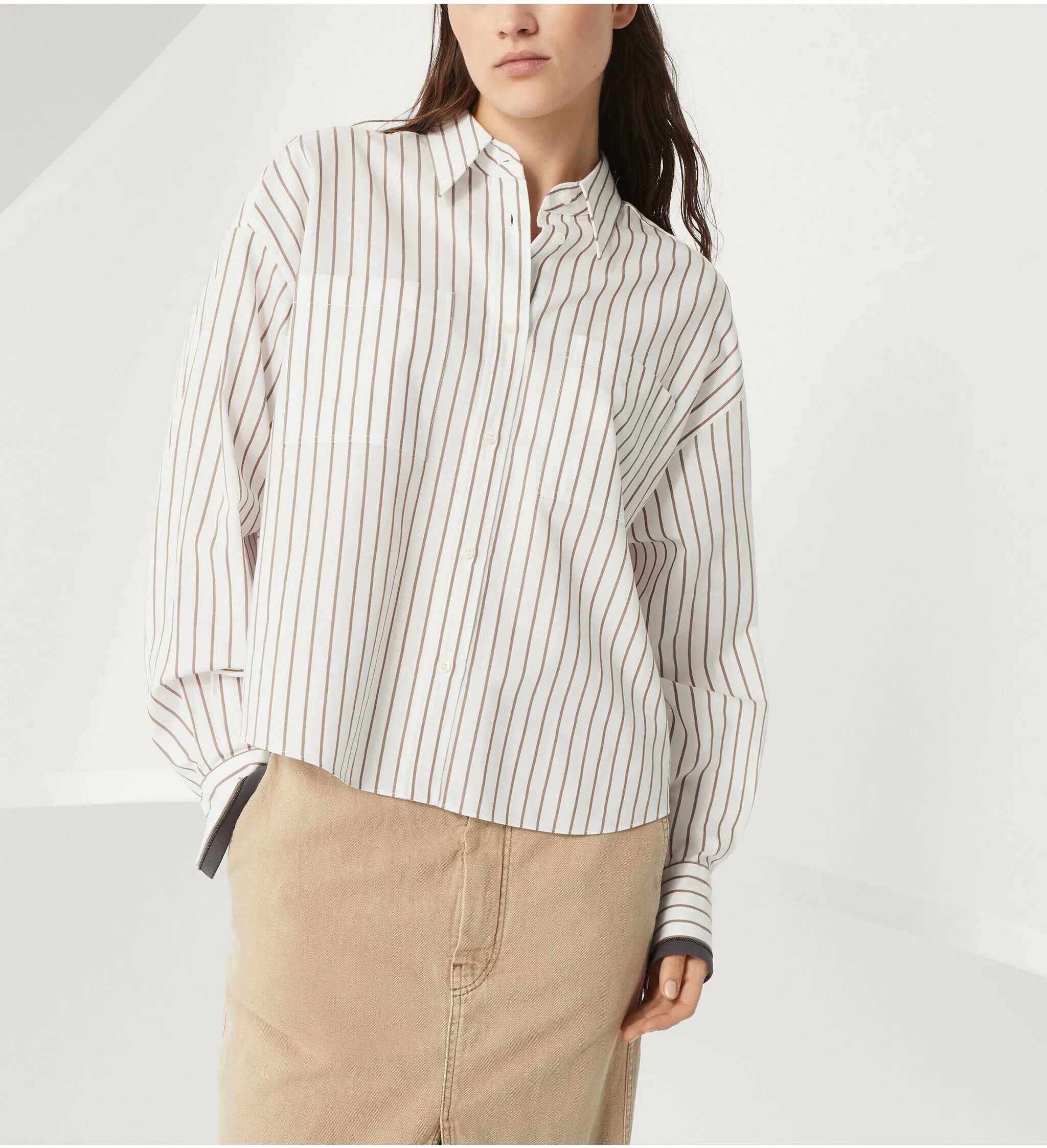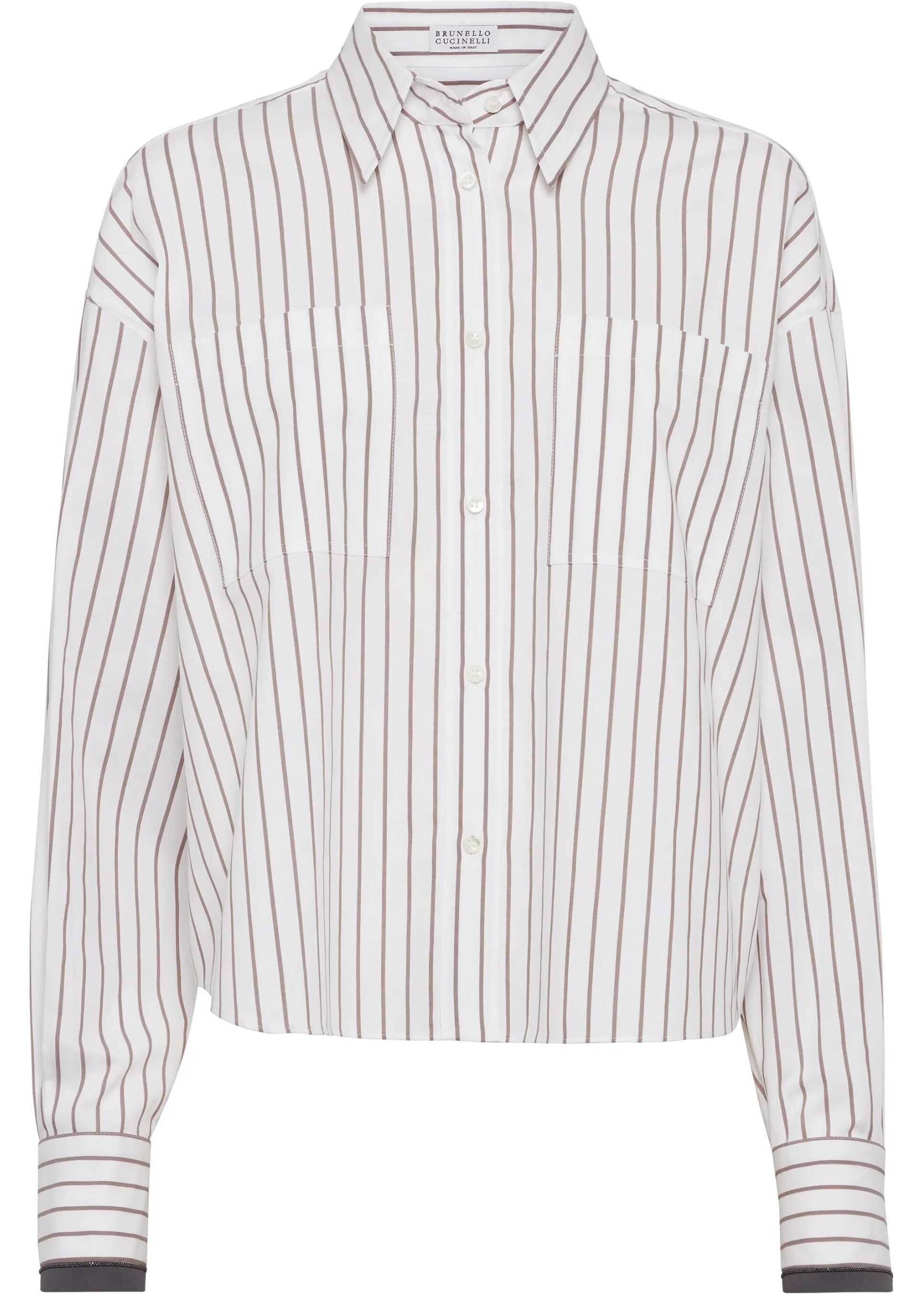 Brunello Cucinelli's Cotton Shirt features a classic collar and front button closure for a stylish and versatile look. Adjustable button cuffs allow for a customized fit. Two patch pockets on the front add functionality and a touch of style. The understated striped pattern enhances the design, while the regular fit ensures comfort and a flawless look. Perfect for a casual-chic look or a more formal occasion.