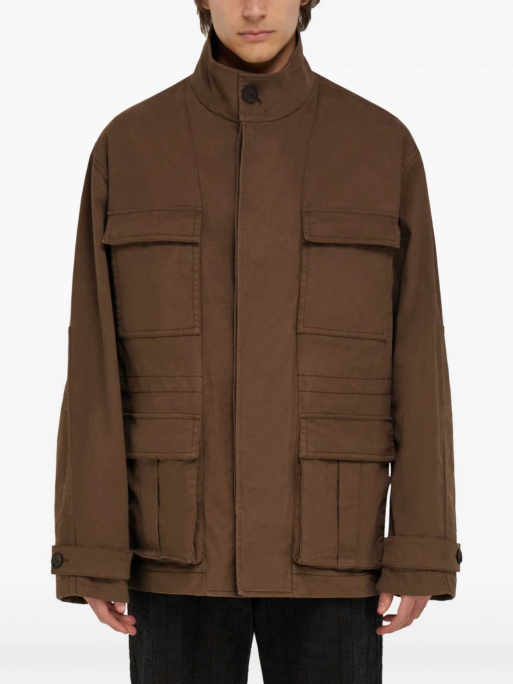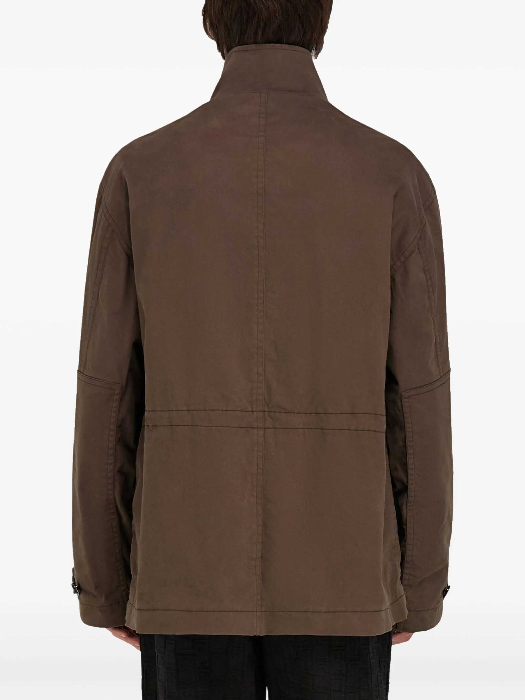 Ferragamo's cotton Jacket combines elegance and functionality. The high collar offers protection, while the front closure with concealed buttons gives a clean look. It features four welt pockets with an applique flap that are practical and discreet. Adjustable button cuffs and a waistband with internal drawstring allow you to adjust the fit. A refined and versatile garment, perfect for a neat and functional style.