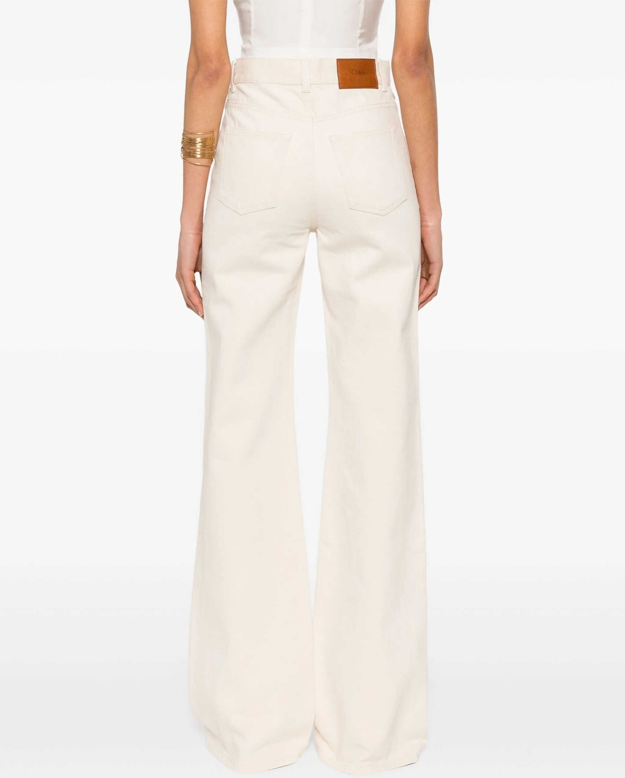Chloé's Jeans are a sleek, modern fit with a silhouette that opens gently toward the bottom, creating a sleek, slimming effect. The zip-and-button front closure ensures a perfect fit, while belt loops at the waist add practicality. The two patch pockets on the back and three mini pockets on the front complete the design, combining functionality and style. Perfect for a chic, contemporary look, these jeans offer comfort without sacrificing class. The logoed leather patch applied on the back lends a distinctive and luxurious touch to the garment.