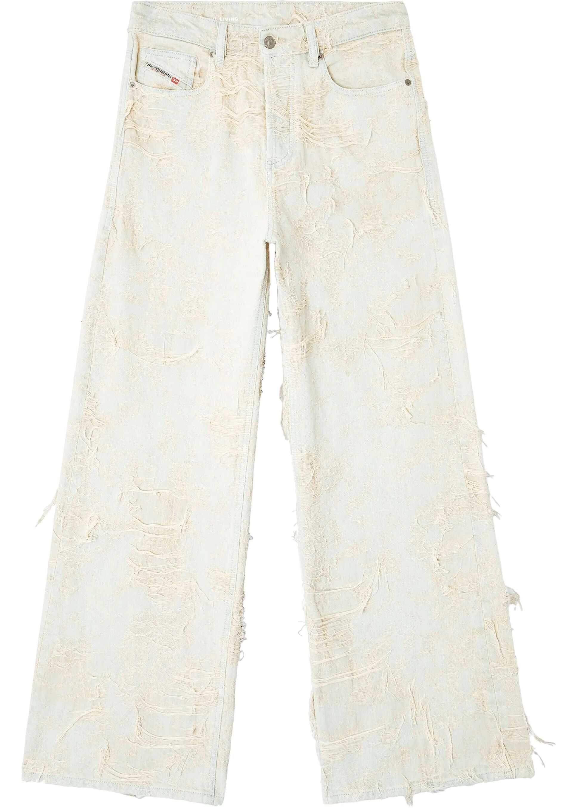 Diesel's 1996 D-sire Jeans are a wide leg style with a bold, contemporary character. With a traditional five-pocket cut and zipper-and-button closure, they offer a comfortable and versatile fit. Belt loops at the waistband allow you to customize the look, while the back Diesel logo applique adds a distinctive touch. All-over rips lend a lived-in, gritty look, making these jeans perfect for a casual, on-trend look ideal for those seeking a mix of comfort and bold style.