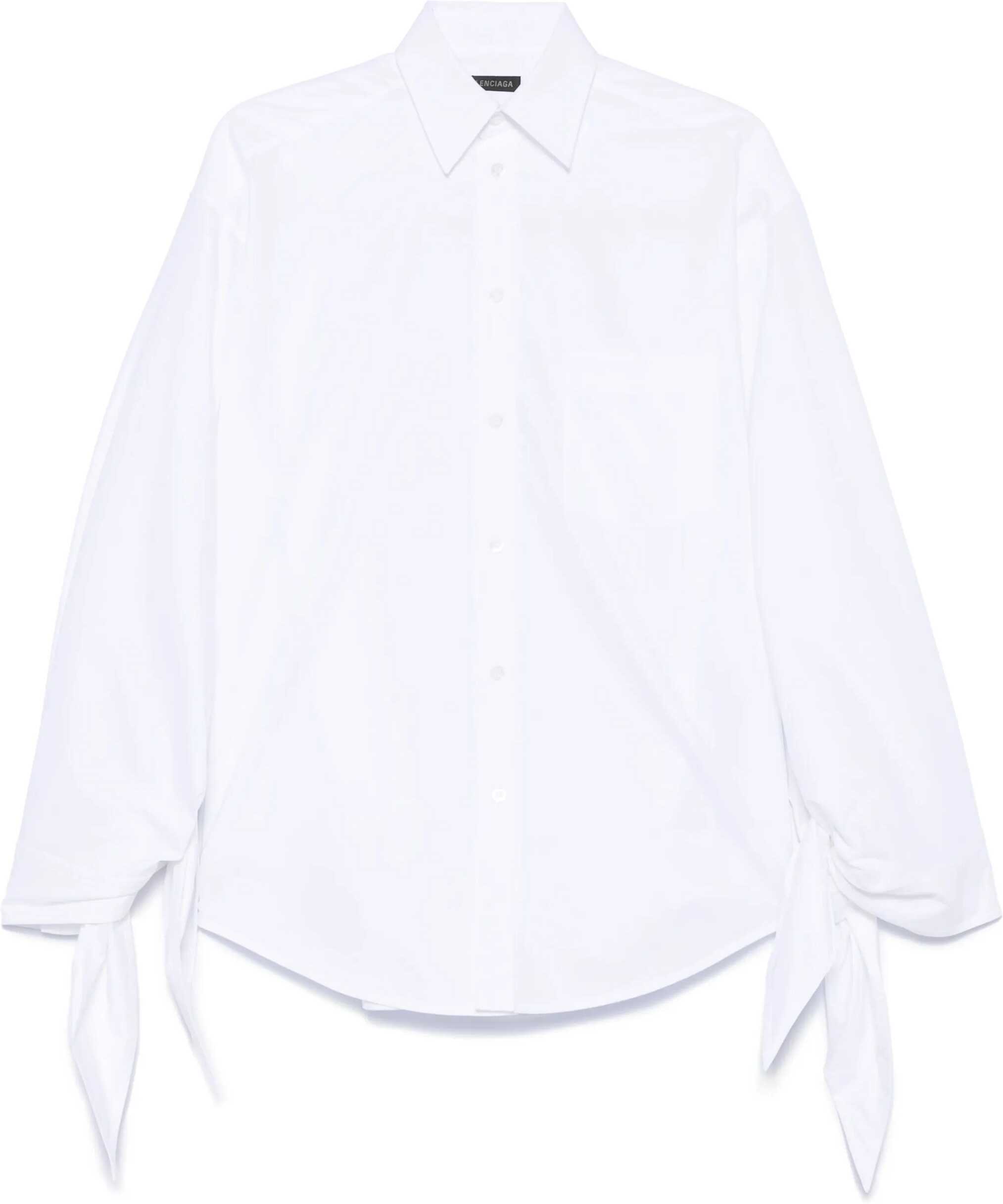 Balenciaga's cotton Shirt is a garment with a distinctive modern style, made from high-quality cotton. The classic collar adds a touch of elegance, while the front button closure ensures practicality. A detail that stands out is the applied welt pocket, embellished with the iconic embroidered monogram, a recognizable symbol of the brand. The wide sleeves feature a knotted detail that allows the cuffs to be adjusted, adding a personalized touch to the design. The oversized fit lends a relaxed and contemporary look, perfect for casual and sophisticated style.