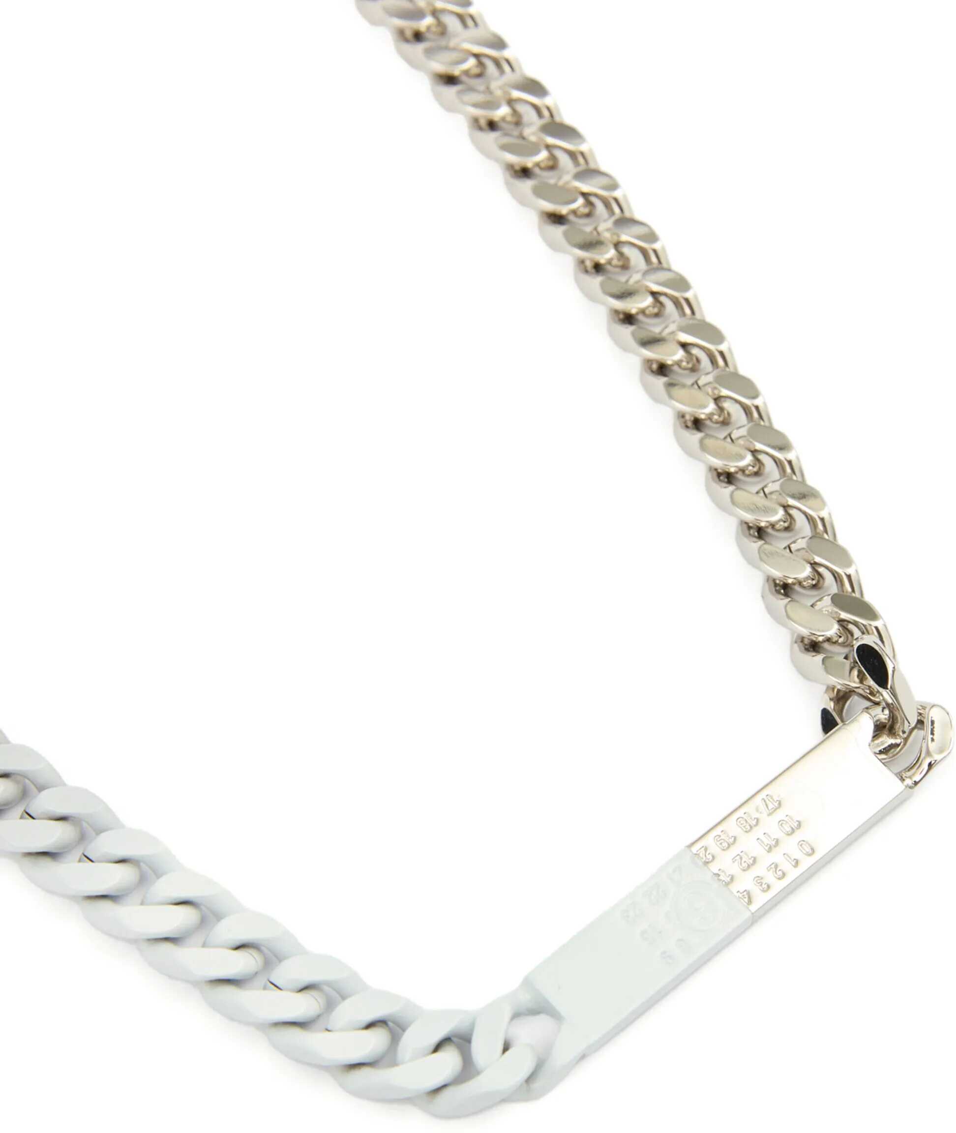 MM6's Necklace is an elegant chain model, featuring a lobster clasp closure that ensures its practicality and security. The flat logoed plaque, present as a distinctive detail, adds a touch of luxury and recognition to the design.