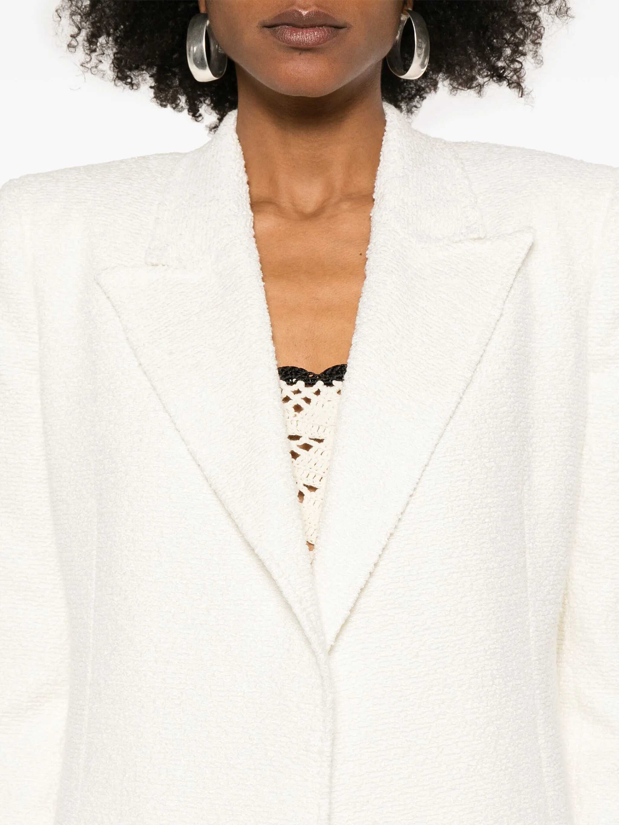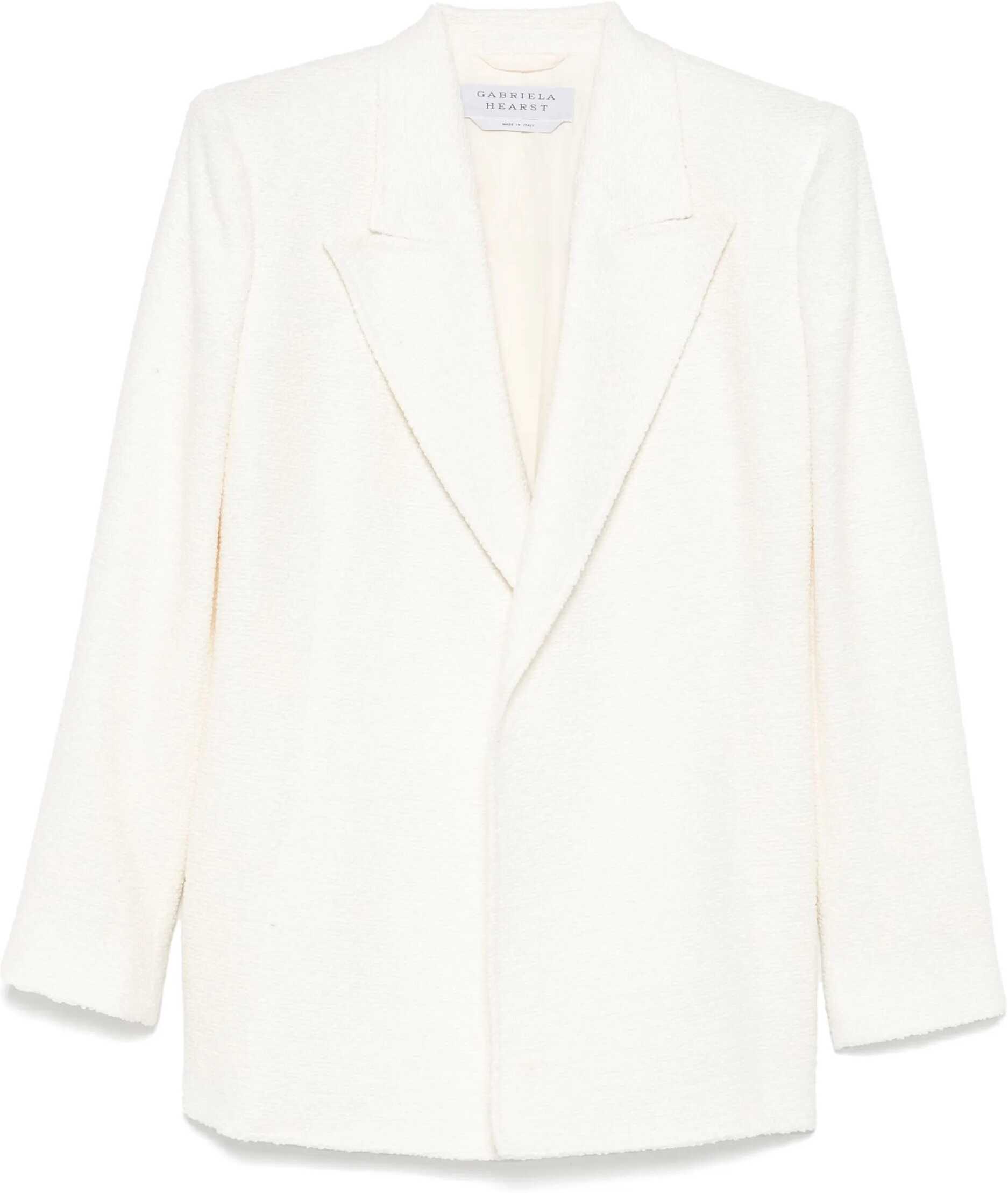 Gabriela Hearst's Mairi Blazer is a sophisticated and elegant piece, crafted with a fine bouclé design that lends a unique texture and timeless appeal. Featuring peaked lapels, the blazer has a flawless silhouette that flatters the figure, with refined details such as the two side slits that add movement and comfort. Perfect for a look that is as formal as it is casual-chic, this blazer embodies the essence of fashion that combines tradition and innovation, a must-have for those seeking understated yet refined elegance.