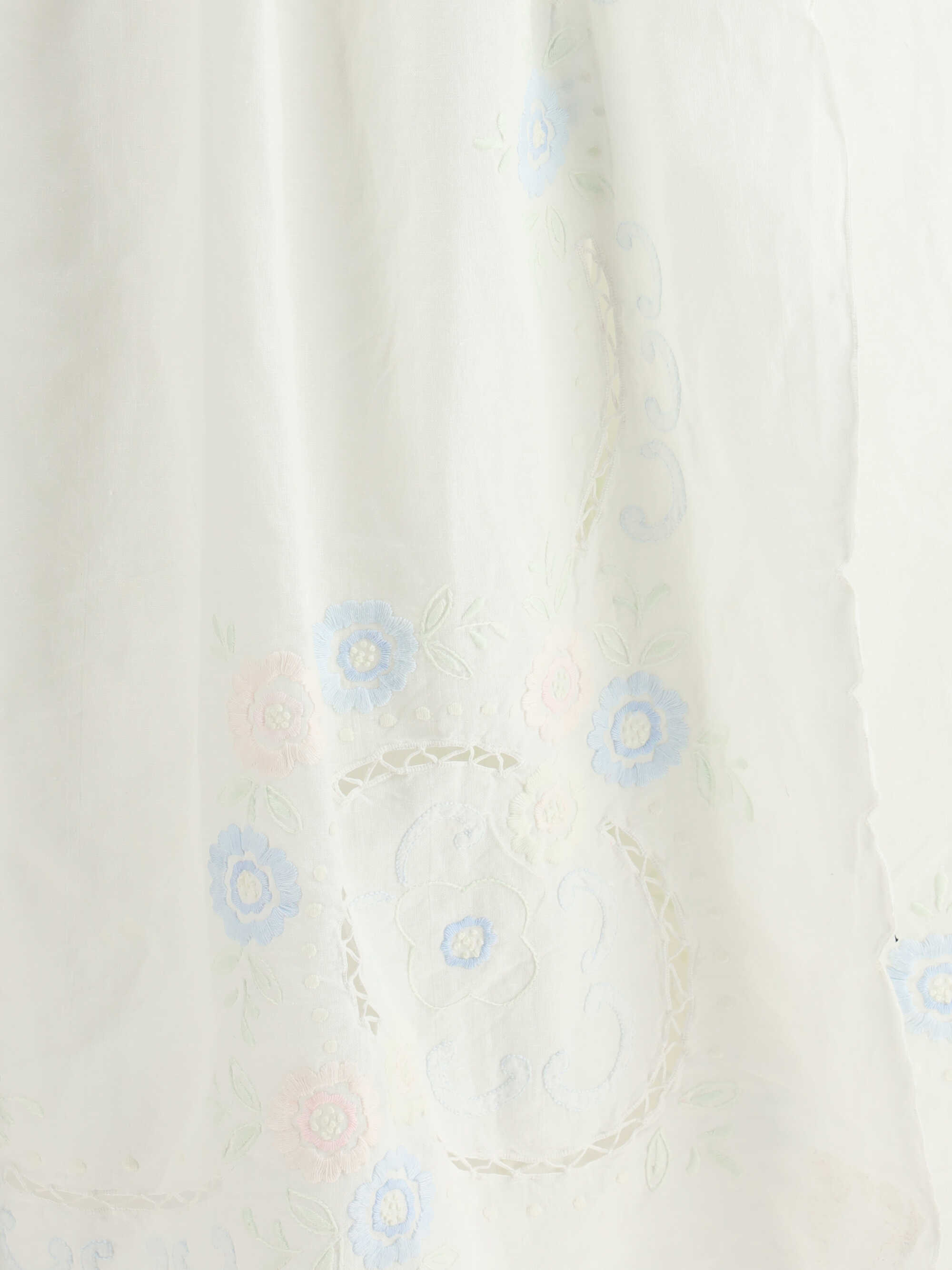 Ella's Impero Long Dress is a garment with timeless appeal, combining elegance and sophistication in a sophisticated design. Its crossover front, combined with a closure via a knotted velvet ribbon at the waist, enhances the figure with a sleek silhouette. Long puff sleeves add a touch of romance, while sangallo lace inserts lend a delicate contrast of texture. The deep V-neckline and all-over embroidered flowers further embellish the dress, lending an air of femininity and elegance.