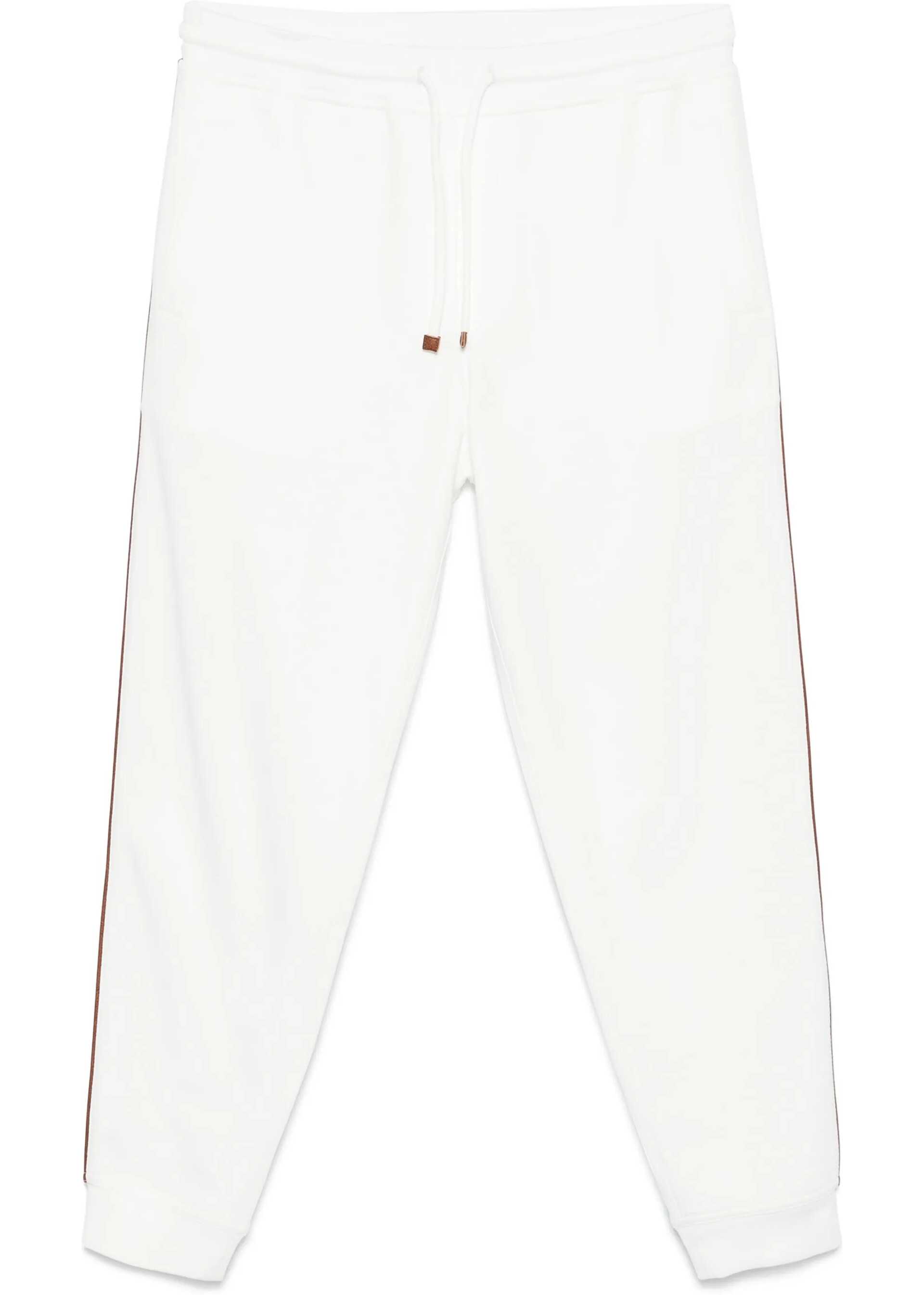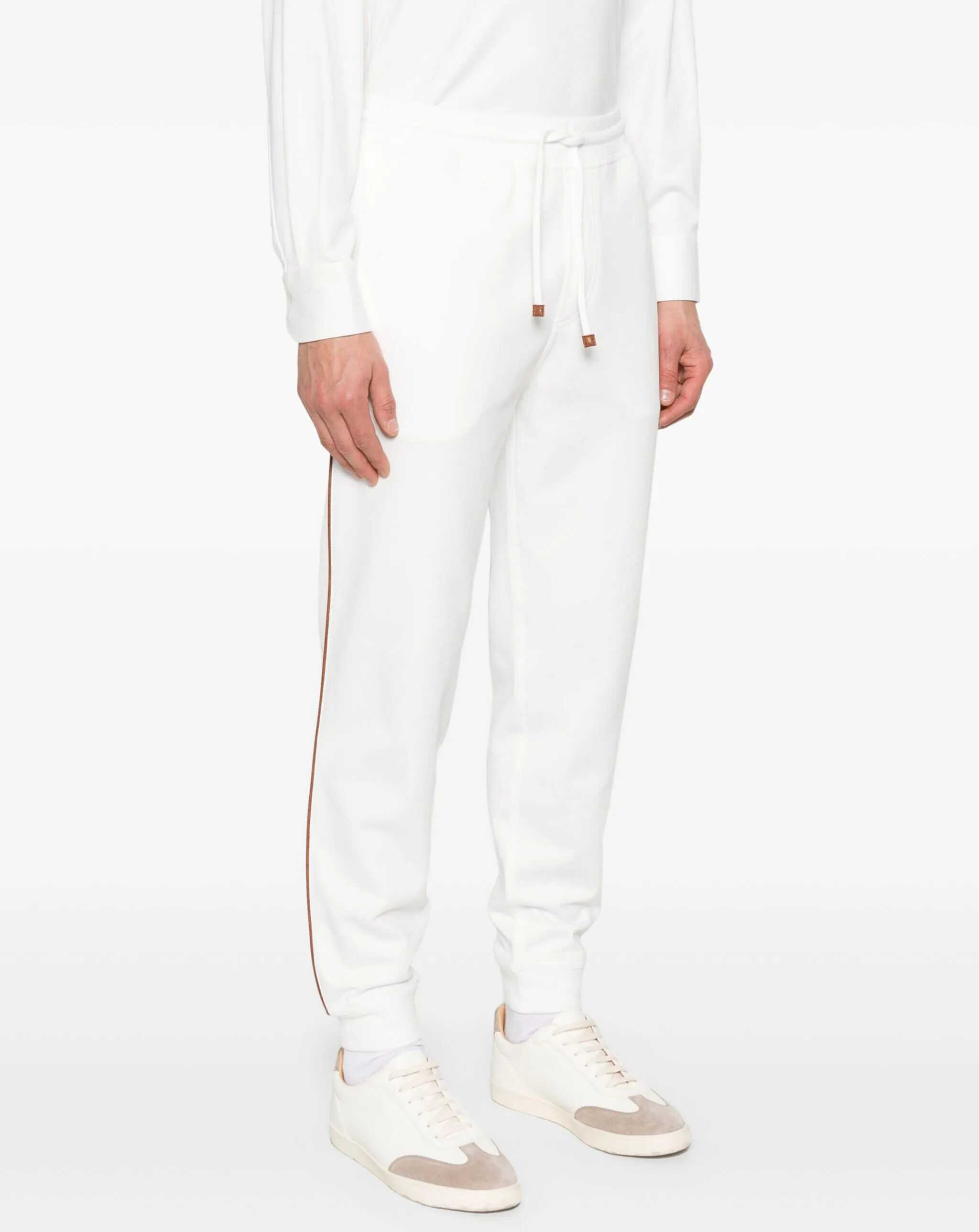 Cotton sweatpants by Brunello Cucinelli, made from a soft, comfortable material that combines the quality of cotton with a refined design. The elasticated waistband is adjustable via drawstring for a personalized and comfortable fit. The two side welt pockets offer practicality, while the two back slit pockets add an extra functional and stylish touch. Contrasting details on the side panel lend dynamism and a modern style accent, making these pants ideal for a casual yet sophisticated look.