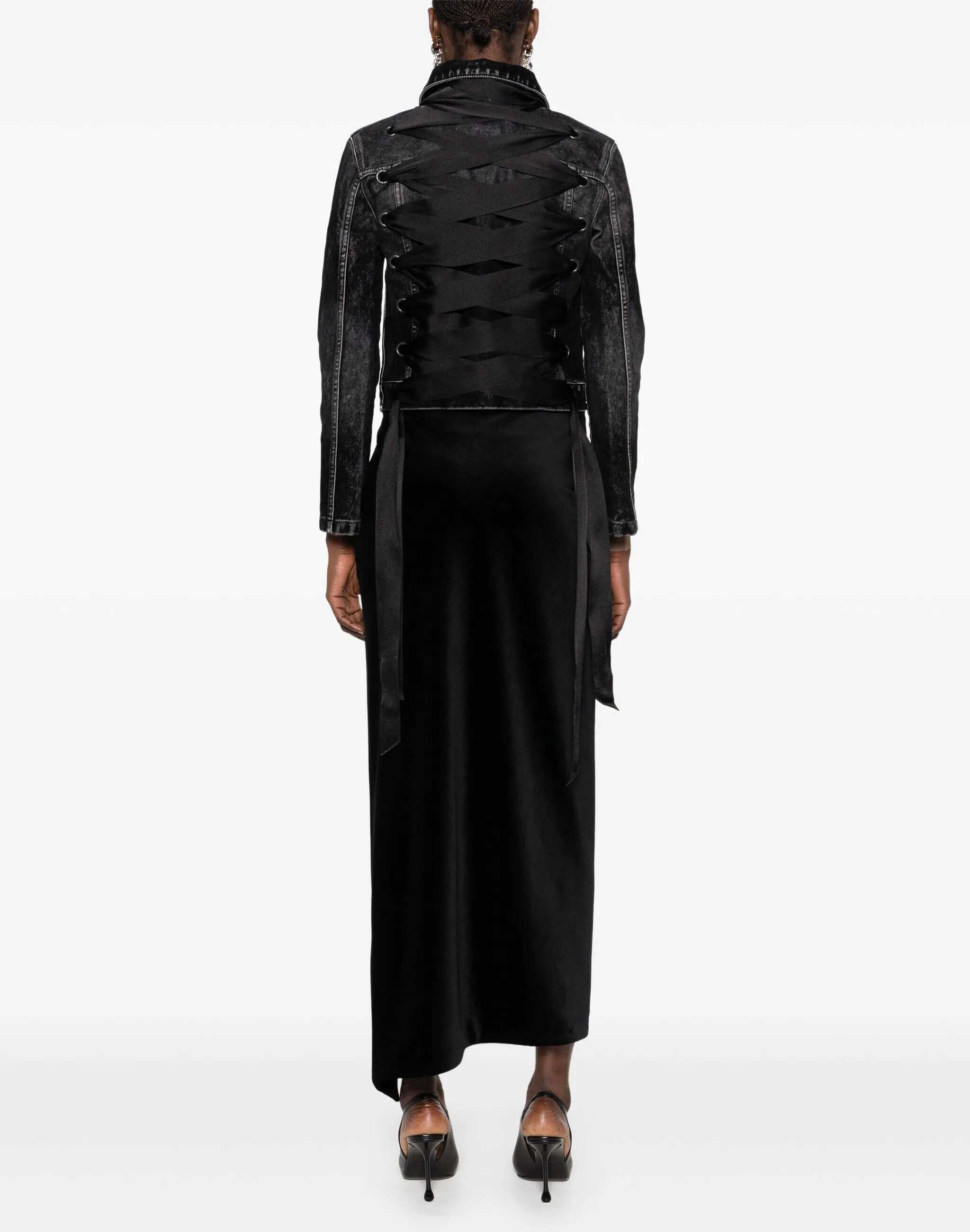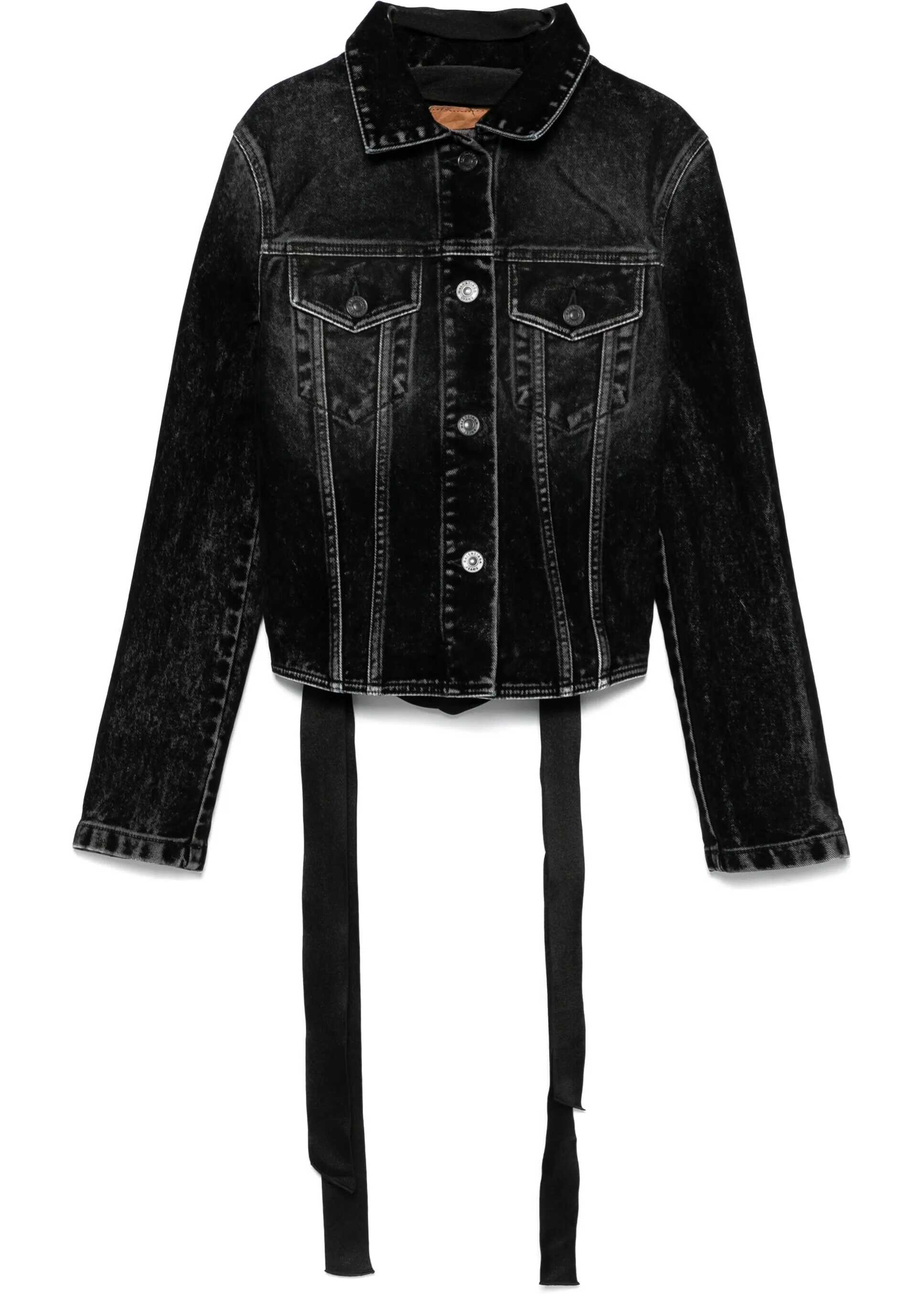 Balenciaga's Denim Jacket is a bold, contemporary piece that blends the tradition of denim with unique modern details. The classic collar and front button closure give it a timeless design, while the two front patch pockets with flap and buttons add a touch of practicality and style. The ribbon applique on the back gives the jacket a distinctive and creative detail, making it a versatile piece for those seeking a casual look but with a strong personality. A garment that combines comfort and innovative design, perfect for those who like to stand out.