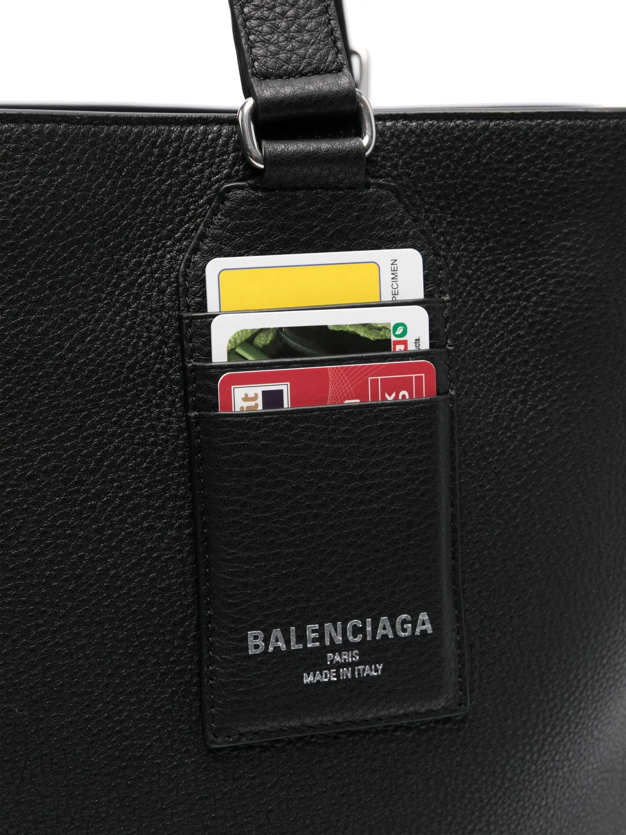 Balenciaga's Shoulder Bag features a sophisticated grained leather design with an open top for quick and easy access. Adjustable shoulder straps offer comfort, while the interior features a zippered pocket to keep your belongings safe. An elegant external, logo-embossed card holder detail completes the accessory with a distinctive brand touch.