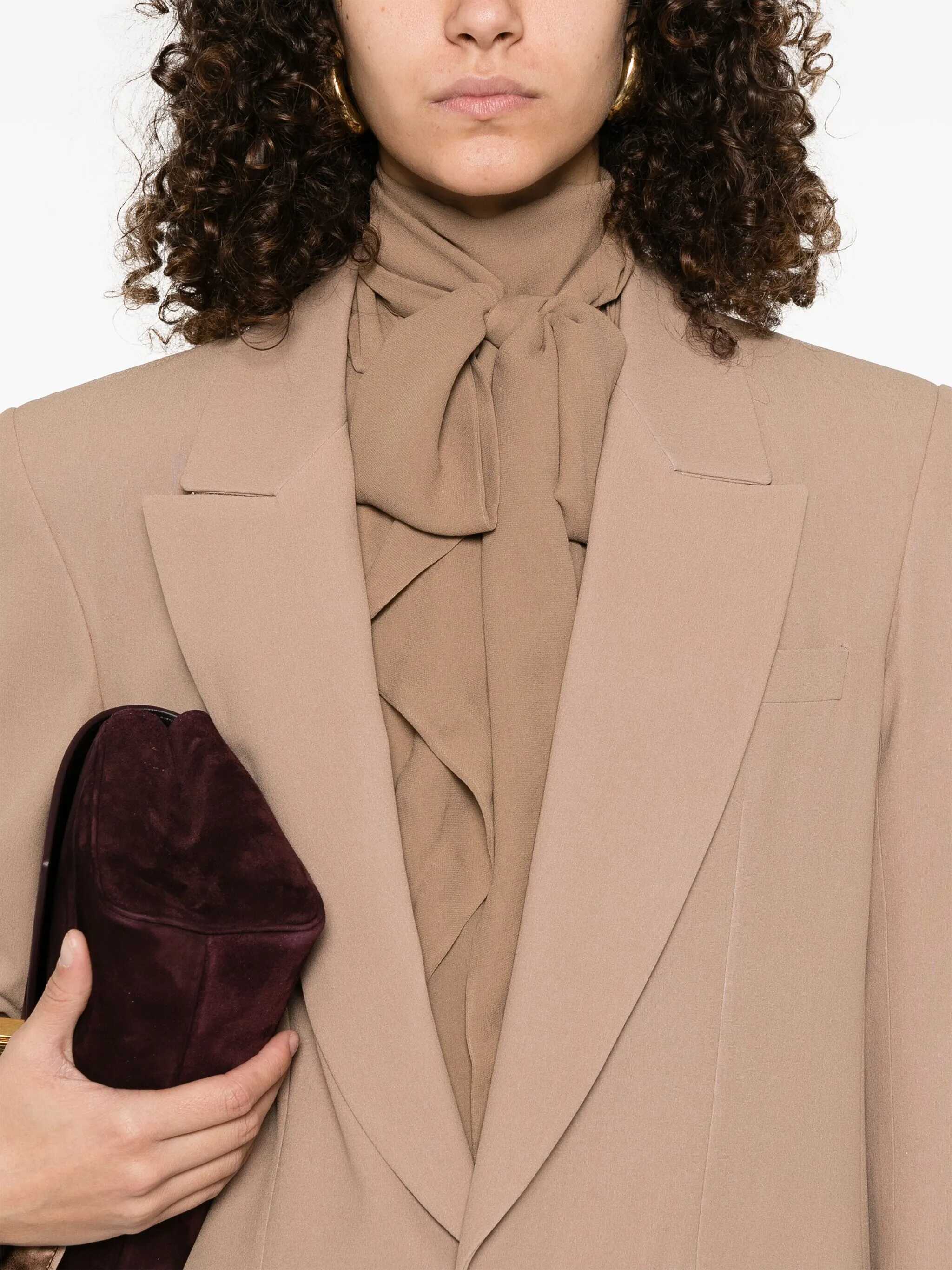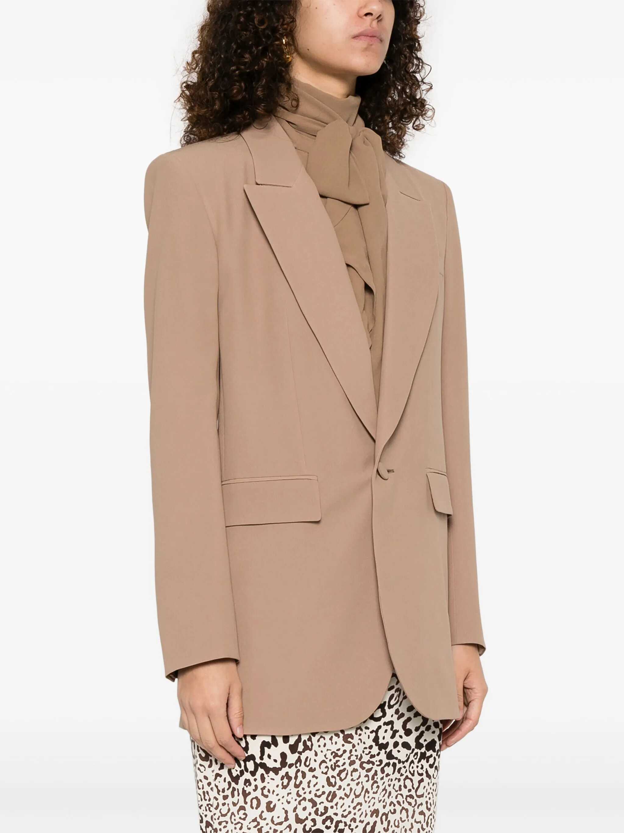 Saint Laurent's single-breasted blazer is a timelessly elegant piece, perfect for those seeking a sophisticated, minimalist style. The peaked lapels lend a touch of sophistication to the design, while the single-button front closure maintains a clean, modern look. The two welt flap pockets on the front add functionality to the look without compromising elegance. The back slit provides greater freedom of movement, completing the design with a practical touch. This blazer is ideal for creating a formal look or adding a classy element to a more casual outfit, perfect for any occasion that calls for elegance and style.