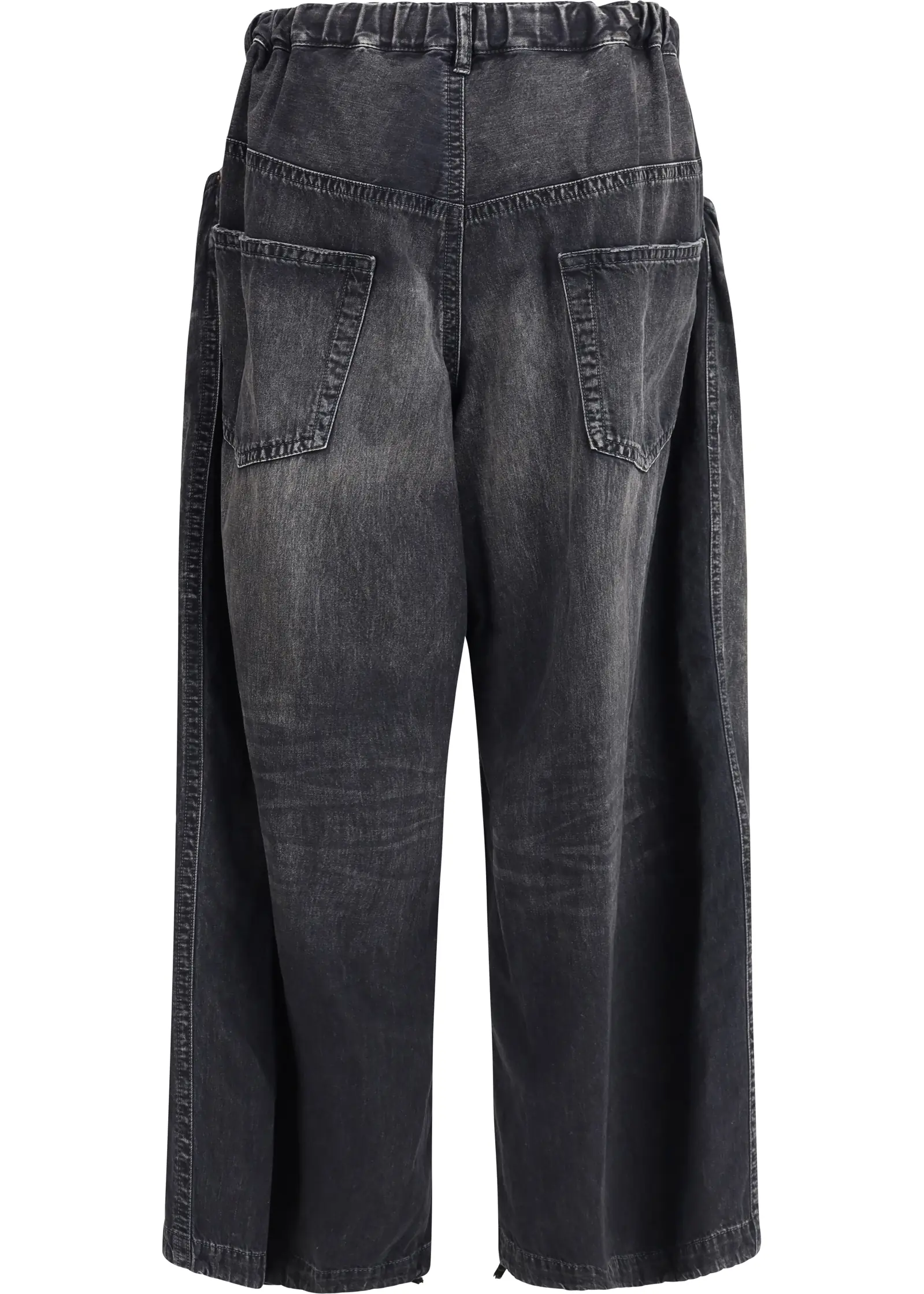 Maison Mihara's cotton Jeans are a modern, comfortable style with a baggy pattern and five-pocket construction. The elasticated waistband with drawstring ensures a comfortable and adjustable fit. The front closure features a zipper and button, adding a practical and stylish touch. An iconic monogram patch is applied to the front, giving the jeans a distinctive and recognizable look. Perfect for those seeking a balance between casual comfort and refined style.