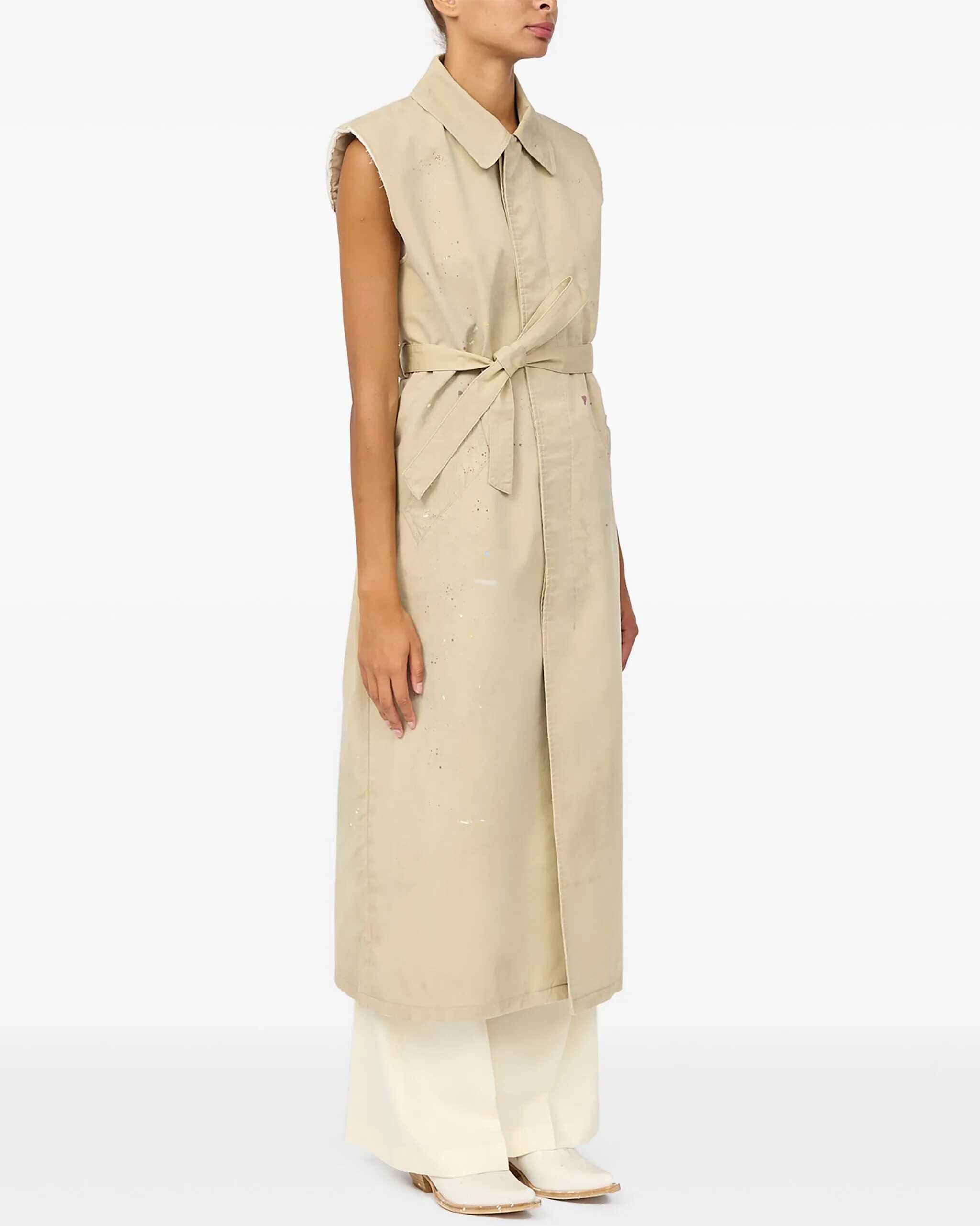 MM6's long Vest is an essential and sophisticated design. Featuring a concealed front button closure, it features a matching belt to tie at the waist that enhances the silhouette. The classic collar and two side welt pockets complete the look with a minimal and contemporary touch.