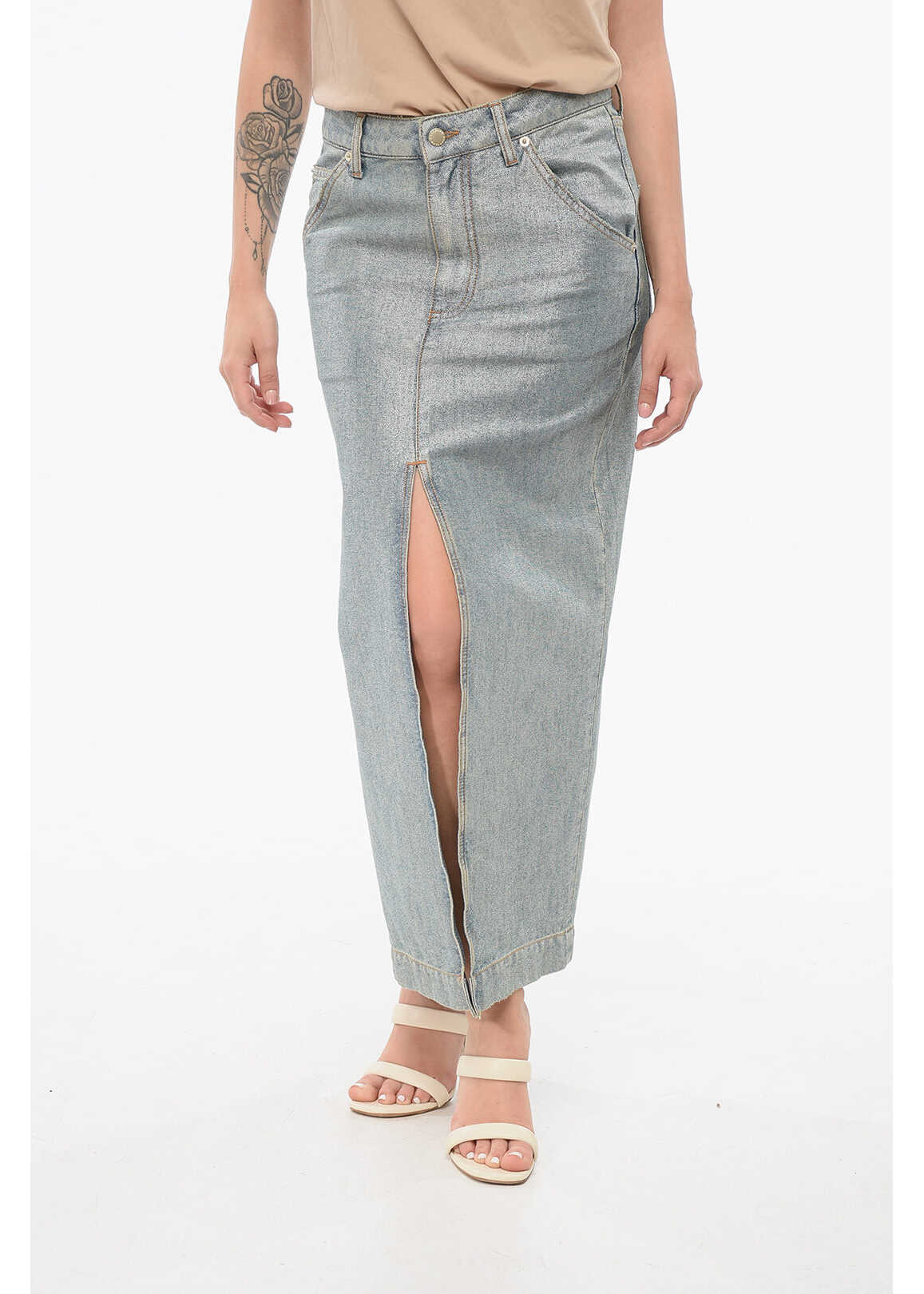 Lurex Denim Skirt With Vintage Effect