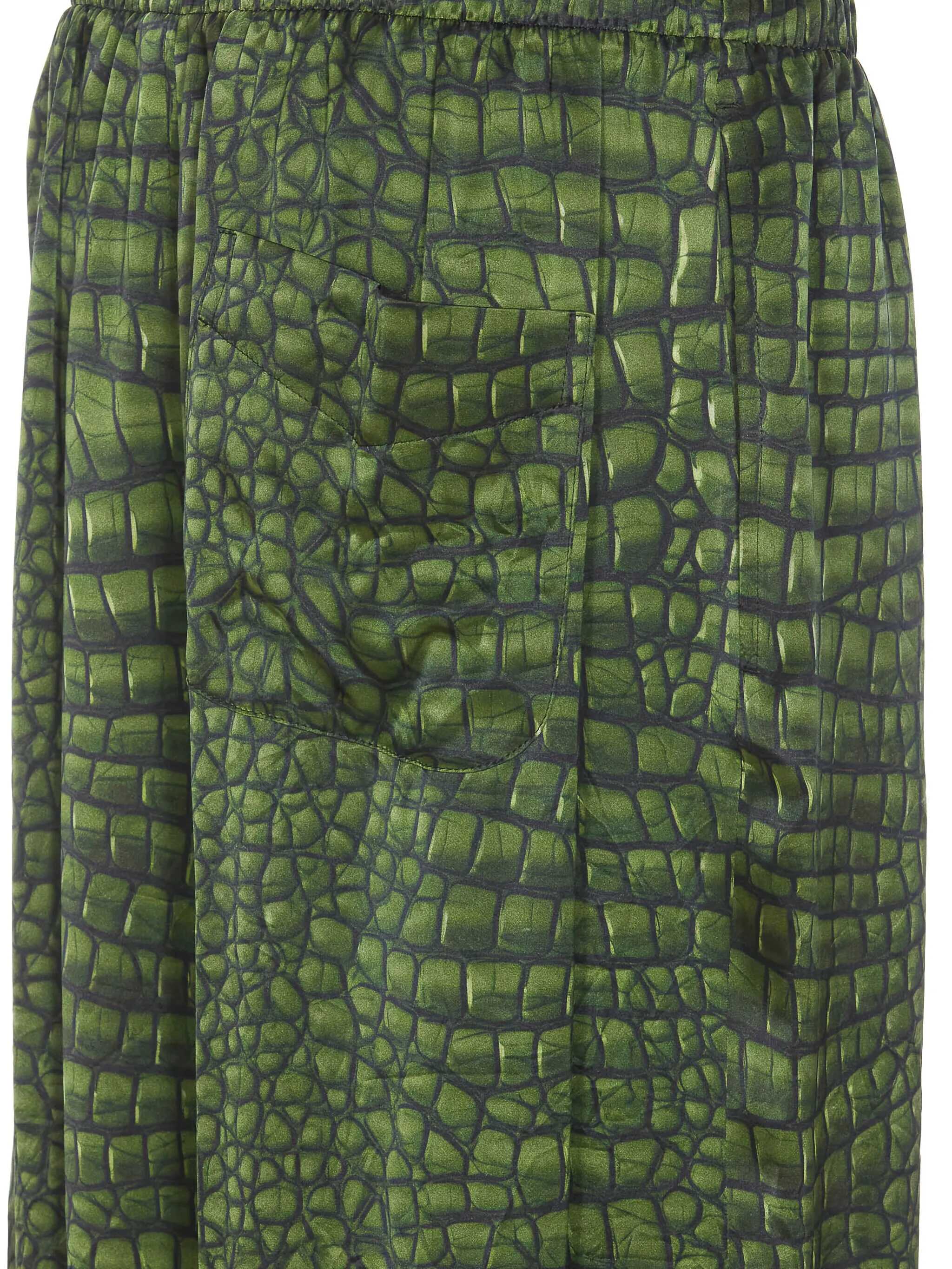 Balenciaga Green Pyjama Pants, Elasticized On Waist, Coulisse Closure, Crocodile Print, Pockets, EU SIZE (FR)