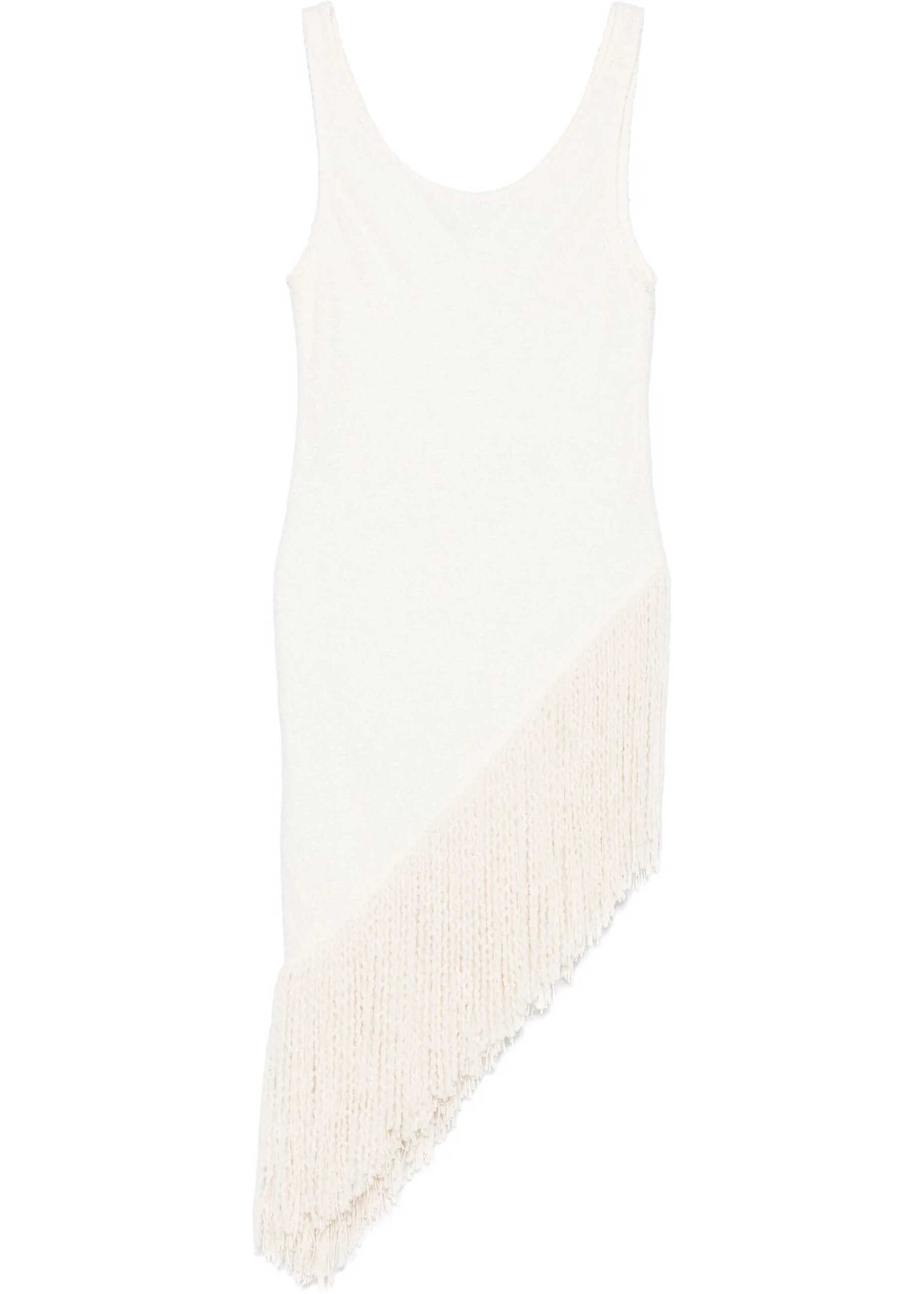 Gabriela Hearst's Ursin Sleeveless Top is made of ivory-colored summer silk bouclé. Elegant and lightweight, it is embellished with an asymmetrical hand-embroidered fringe in cashmere and silk, a detail that enhances the garment's craftsmanship and refined character.