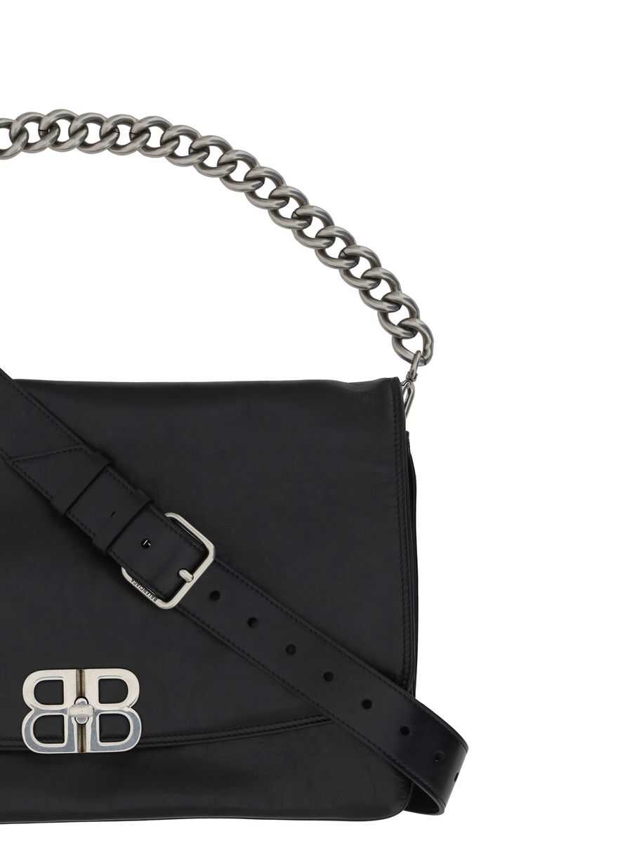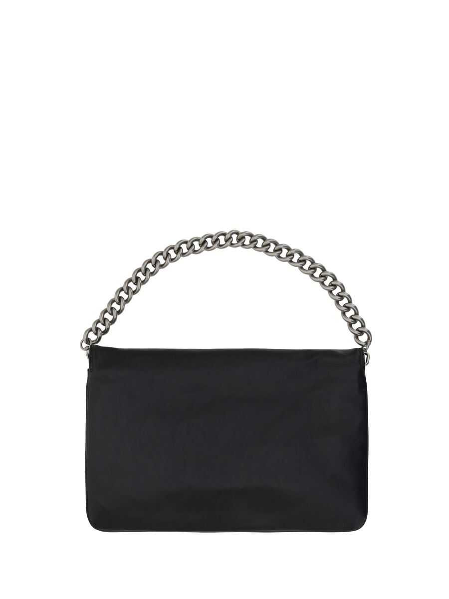 black calf leather smooth grain adjustable leather and chain-link shoulder strap silver-tone logo plaque partitioned compartment internal zip-fastening pocket full lining silver-tone hardware foldover top with twist-lock fastening