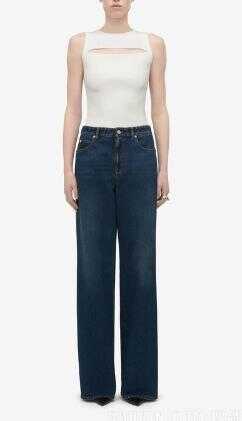 indigo blue cotton washed denim whiskering effect contrast stitching rivet detailing belt loops concealed fly and button fastening mid-rise wide leg classic five pockets floor-length We've partnered with Good On You — an independent agency that rates how brands perform in relation to their impact on the planet, people and animals, with a multi-criteria rating simplified to a five points scale. In order to be awarded our conscious label, larger brands need to score a minimum of four out of five ('Good'), while smaller brands must score at least three out of five ('It's A Start'). This item comes from a brand rated three out of five ('It's A Start') by Good on You at the time it was added on FARFETCH. Please note, this is a brand-level rating and does not guarantee that this product is made with conscious materials. Learn more about what makes a product Conscious on our Conscious Criteria page