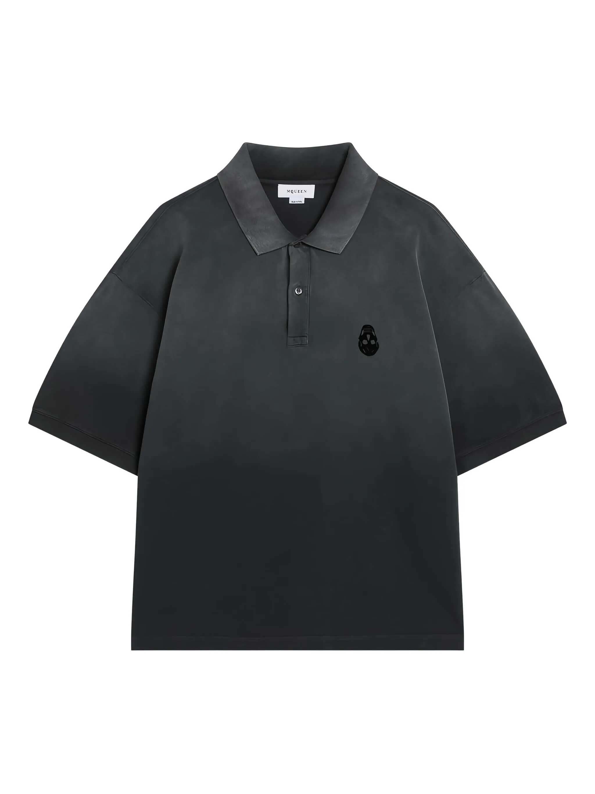 Gradient-effect cotton piqué polo shirt, inverted velvet Skull logo on the front, collar and buttons, short sleeves with dropped shoulders