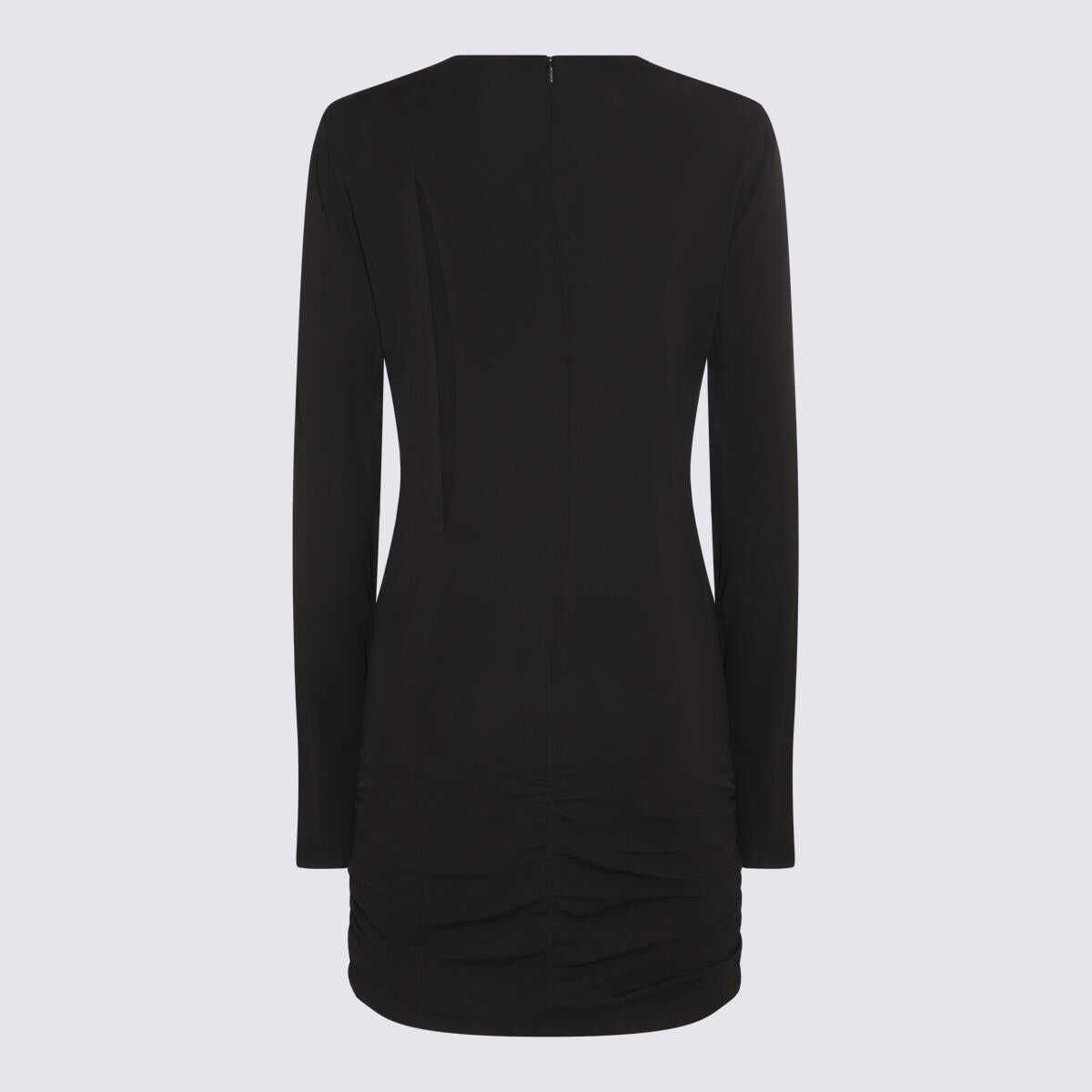 Black viscose blend dress from Versace featuring cut-out detailing, round neck, fitted waistline, above-knee length, rear zip fastening, long sleeves and straight hem.