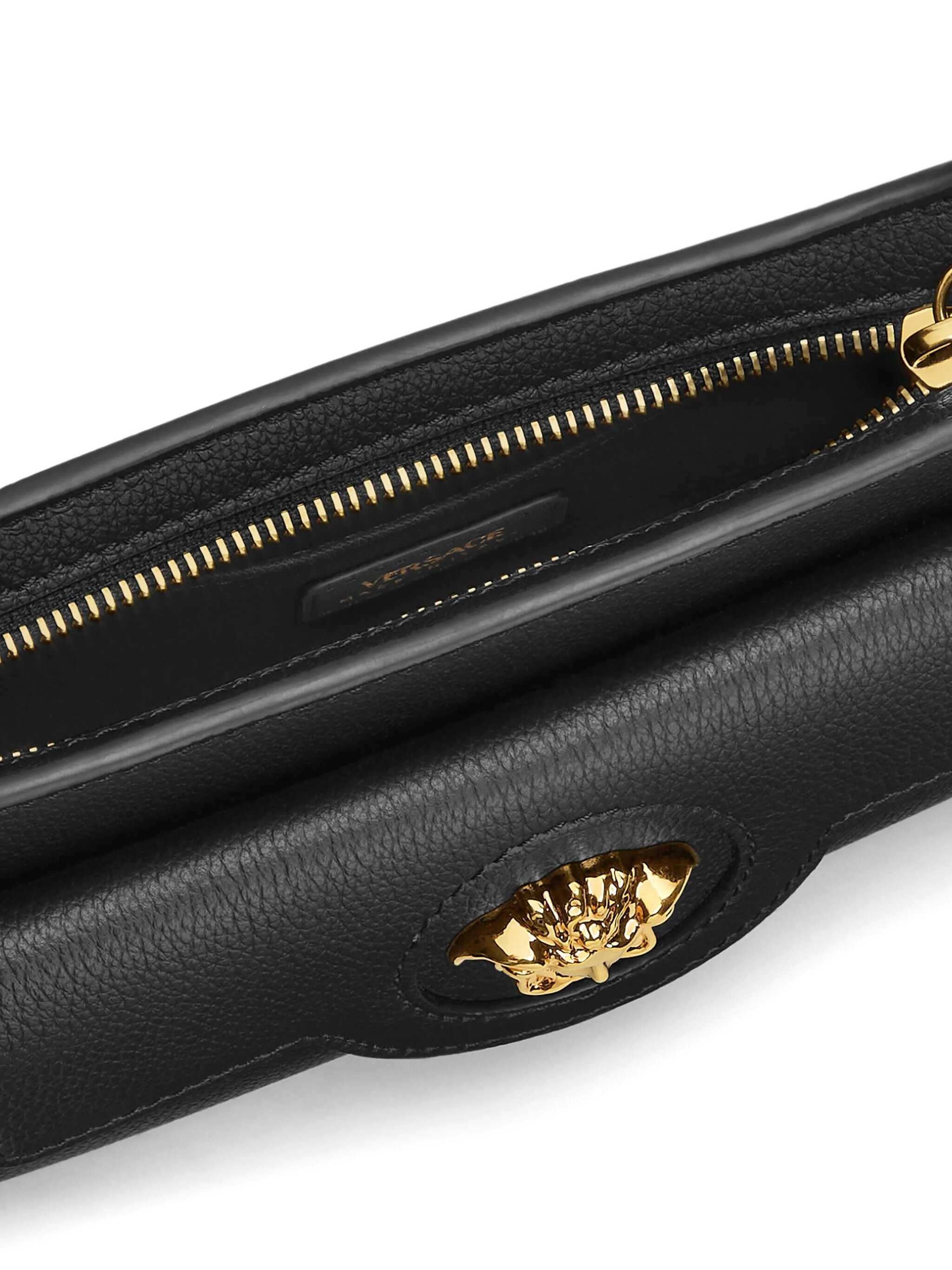 'Mini La Medusa' grainy leather crossbody bag, front pocket, flap closure with Medusa metal detail, back embossed logo, zip closure, removable chain sleeve, adjustable and removable leather shoulder strap