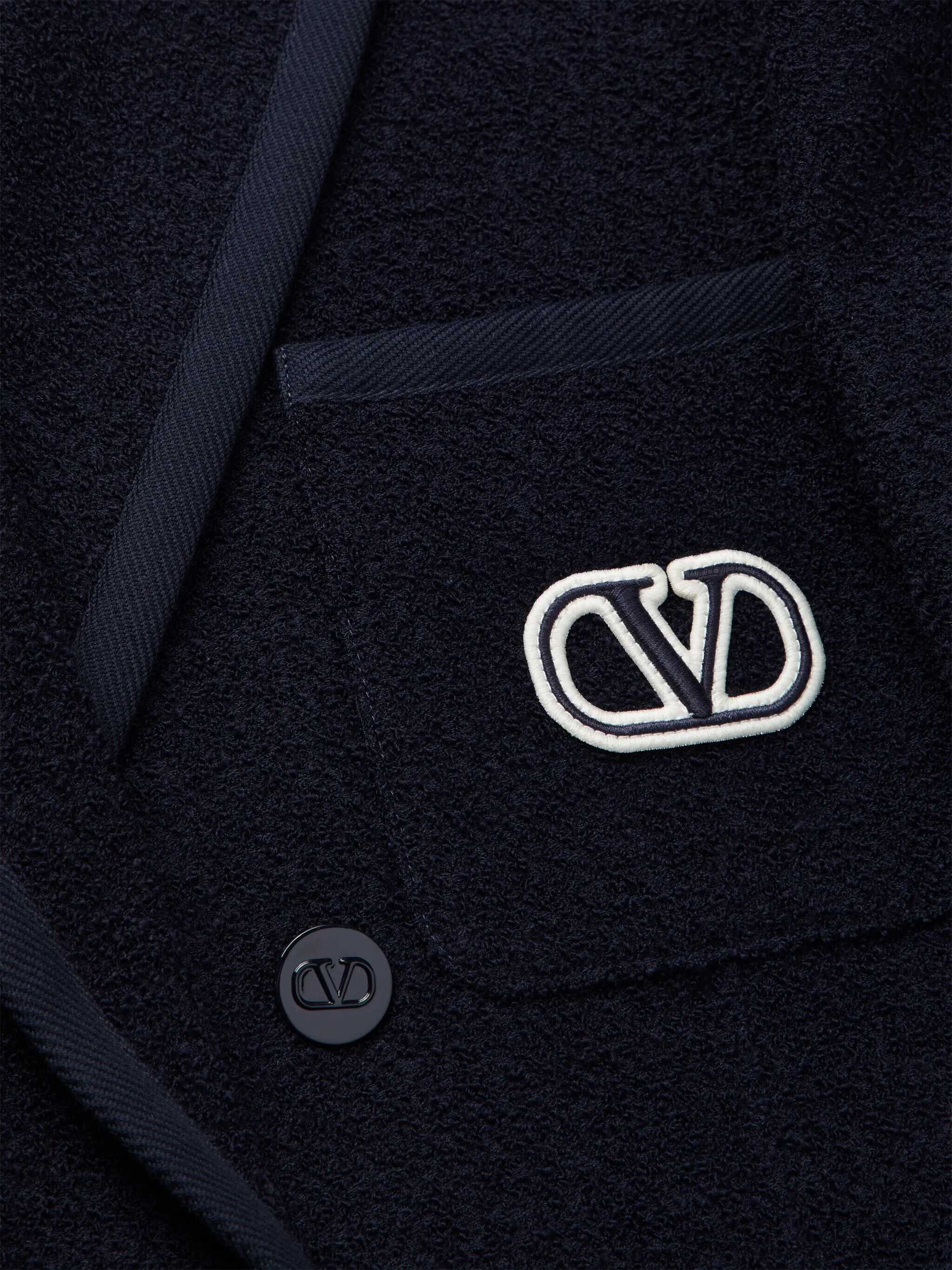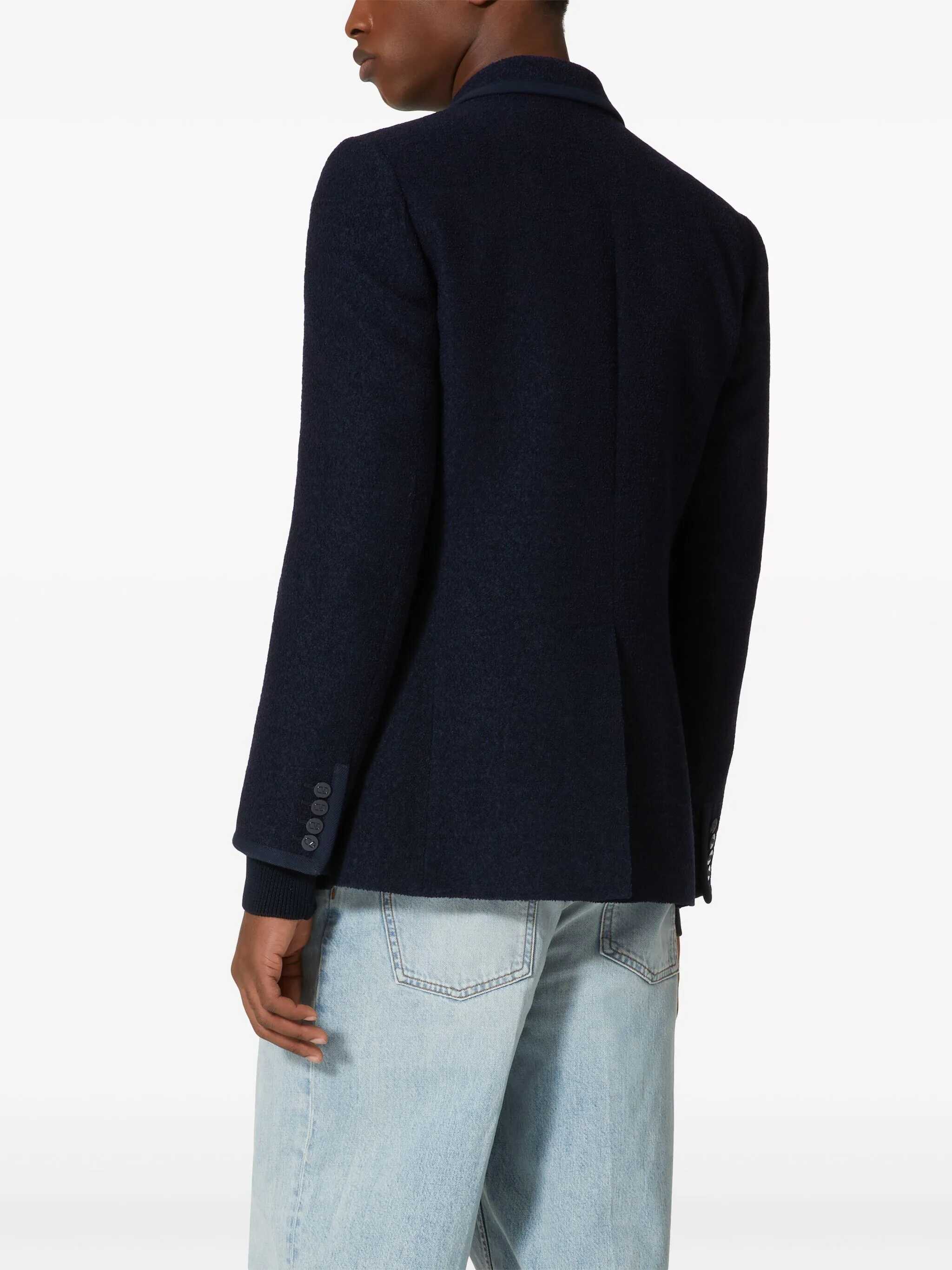 Black wool blazer from Valentino featuring long sleeves, double breasted fastening, frontal pockets, frontal logo and regular vestibility.