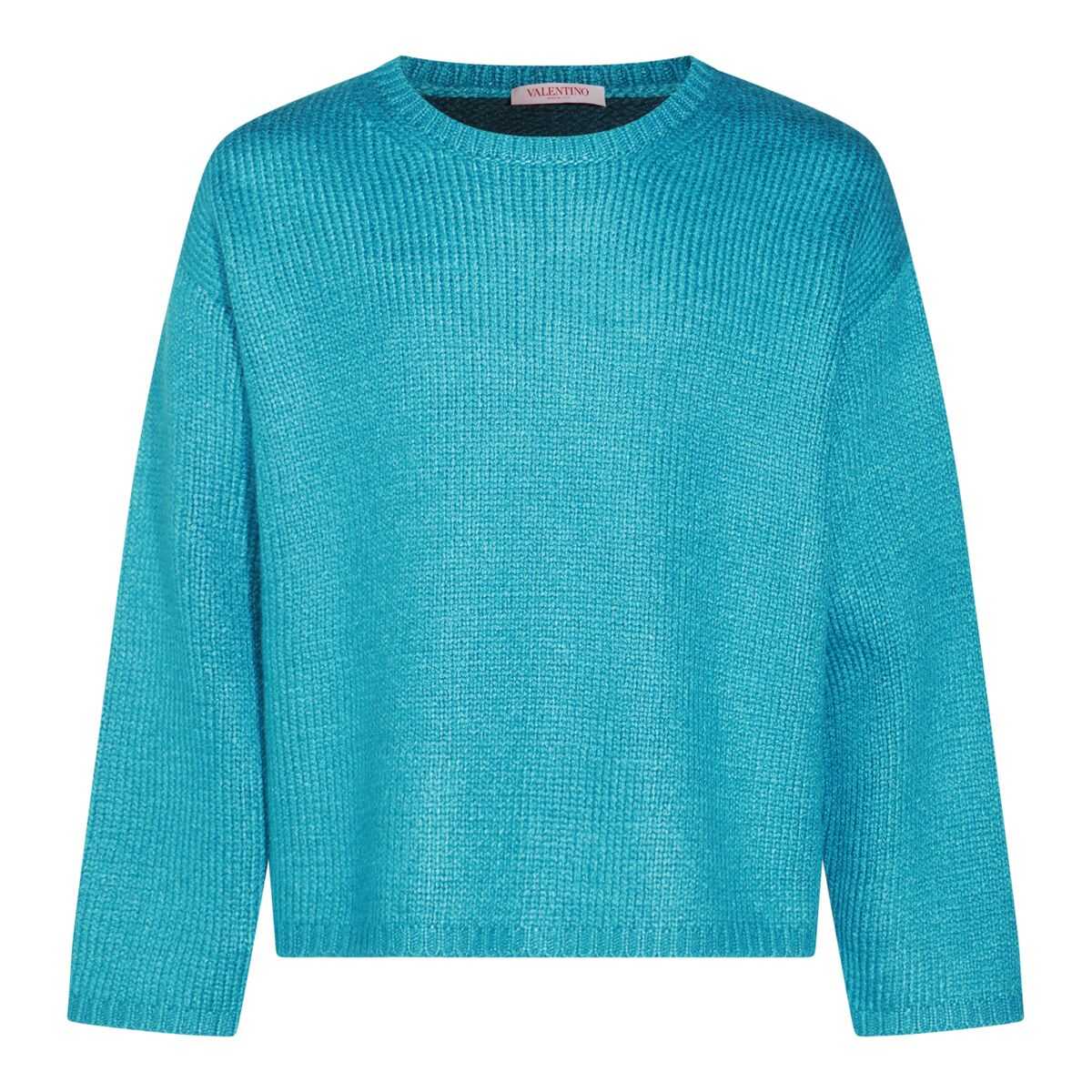 Sky blue silk sweater from Valentino featuring long sleeves, round neck, regular fit and ribbed hems.