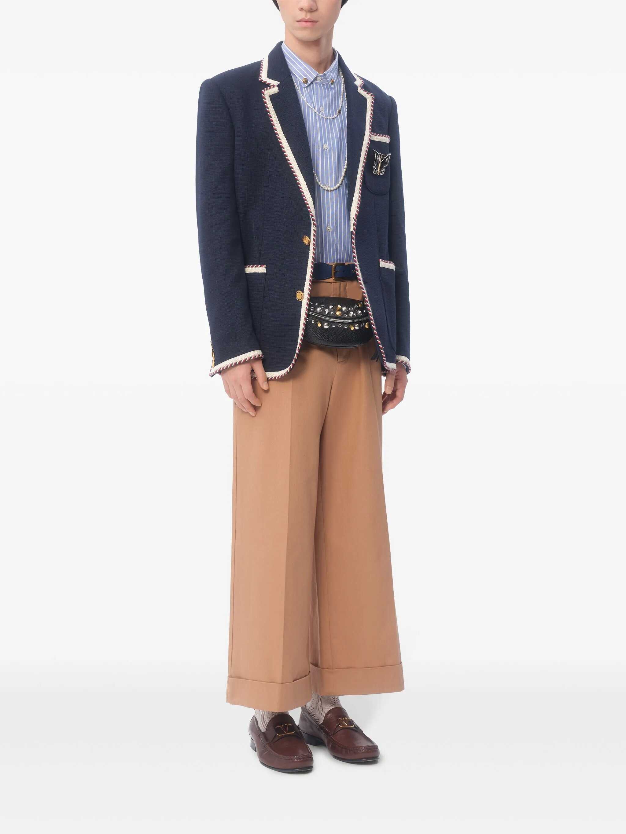 Navy cotton blazer from Valentino featuring long sleeves, pockets, hem details and regular vestibility.