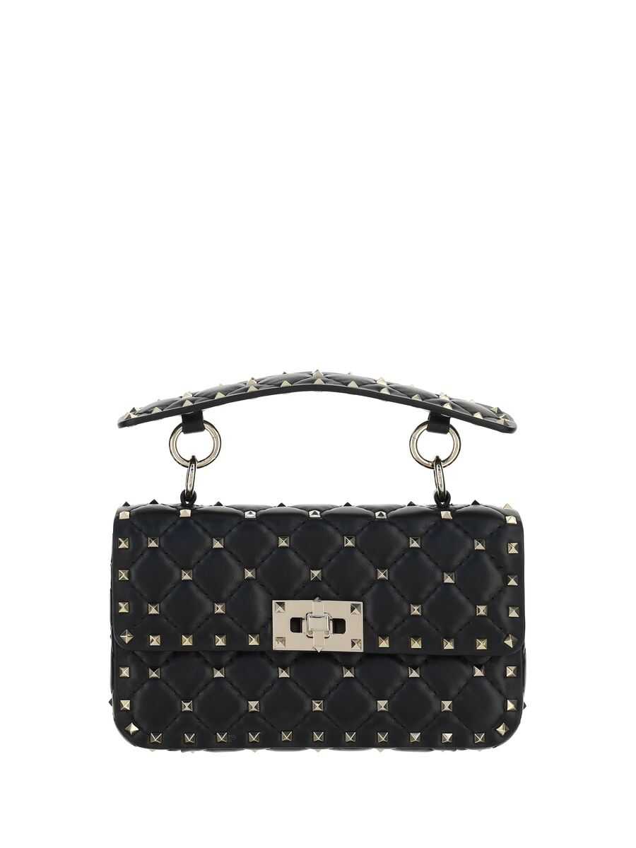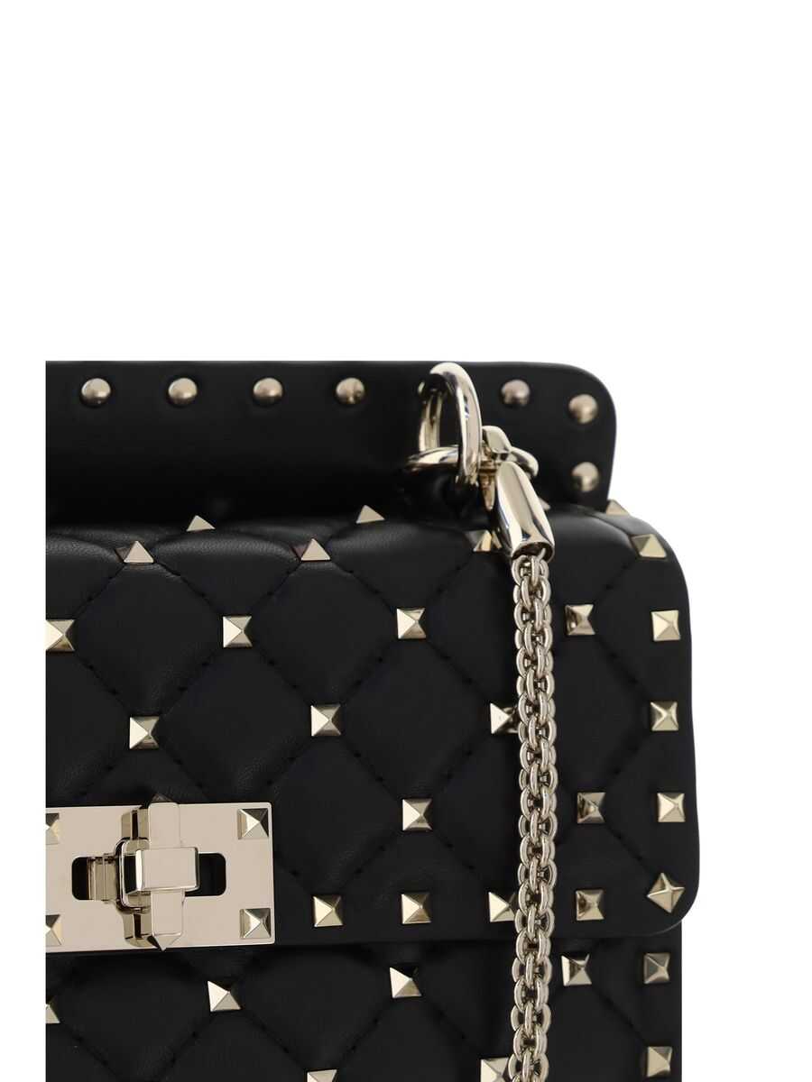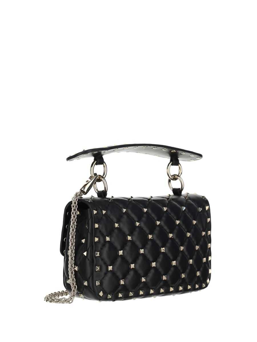 Valentino Garavani's crossbody bag crafted in black quilted nappa adorned with signature platinum-tone metal studs. Featuring twist-lock closure on flap, removable handle and two-way adjustable chain strap. Black leather-lined interior with slip pocket.