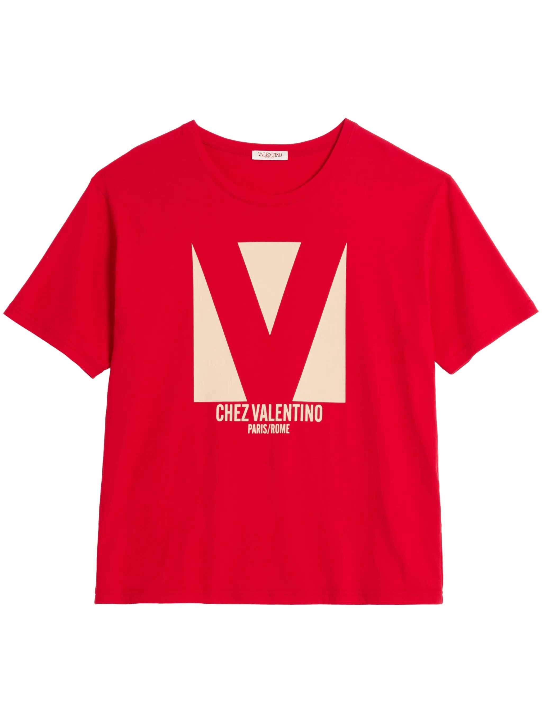 Red cotton t-shirt from Valentino Garavani featuring round collar, short sleeves, frontal print and regular vestibility. Size Type: AMERICA