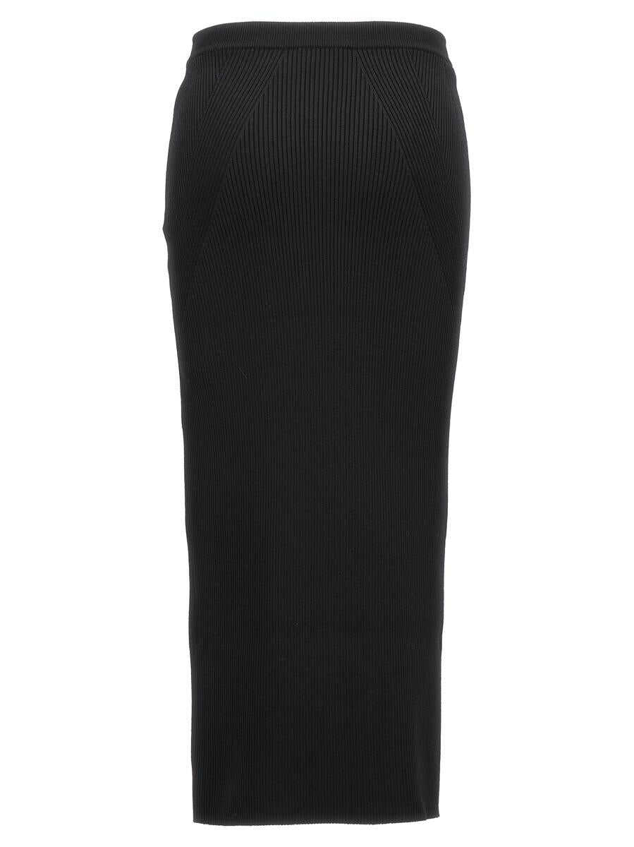 Midi skirt in ribbed wool blend with elastic waistband