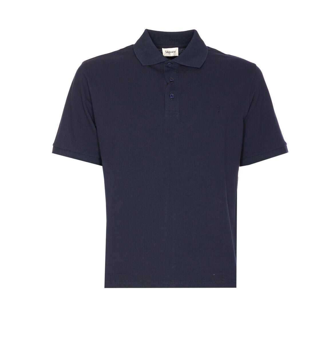 Three-button placket at the neck, polo collar and hem of different lengths.