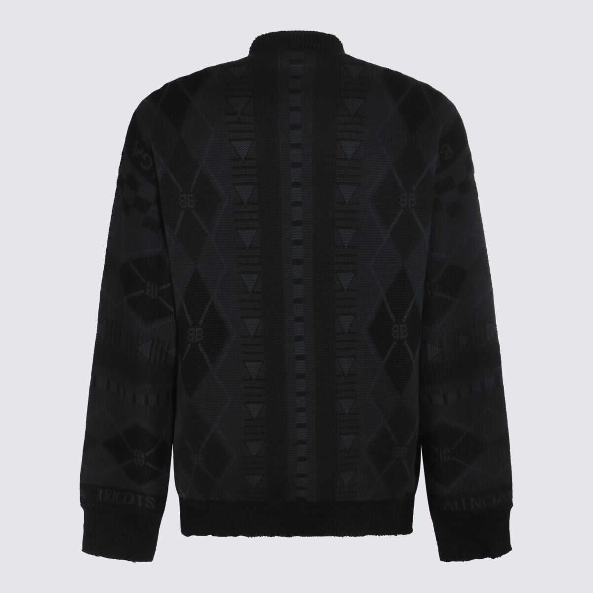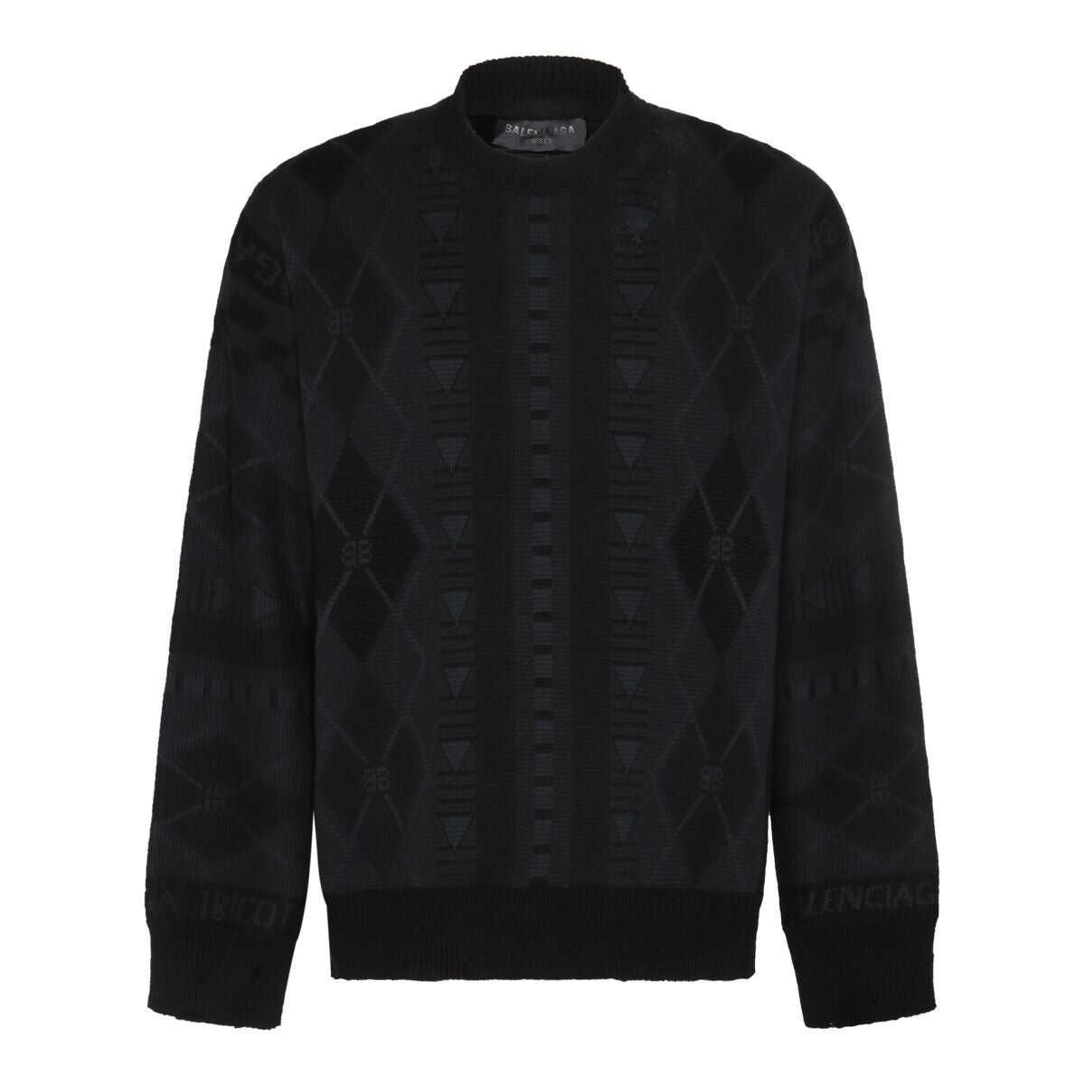 Dark grey cotton knitwear from Balenciaga featuring round collar, long sleeves, all over pattern and soft vestibility.