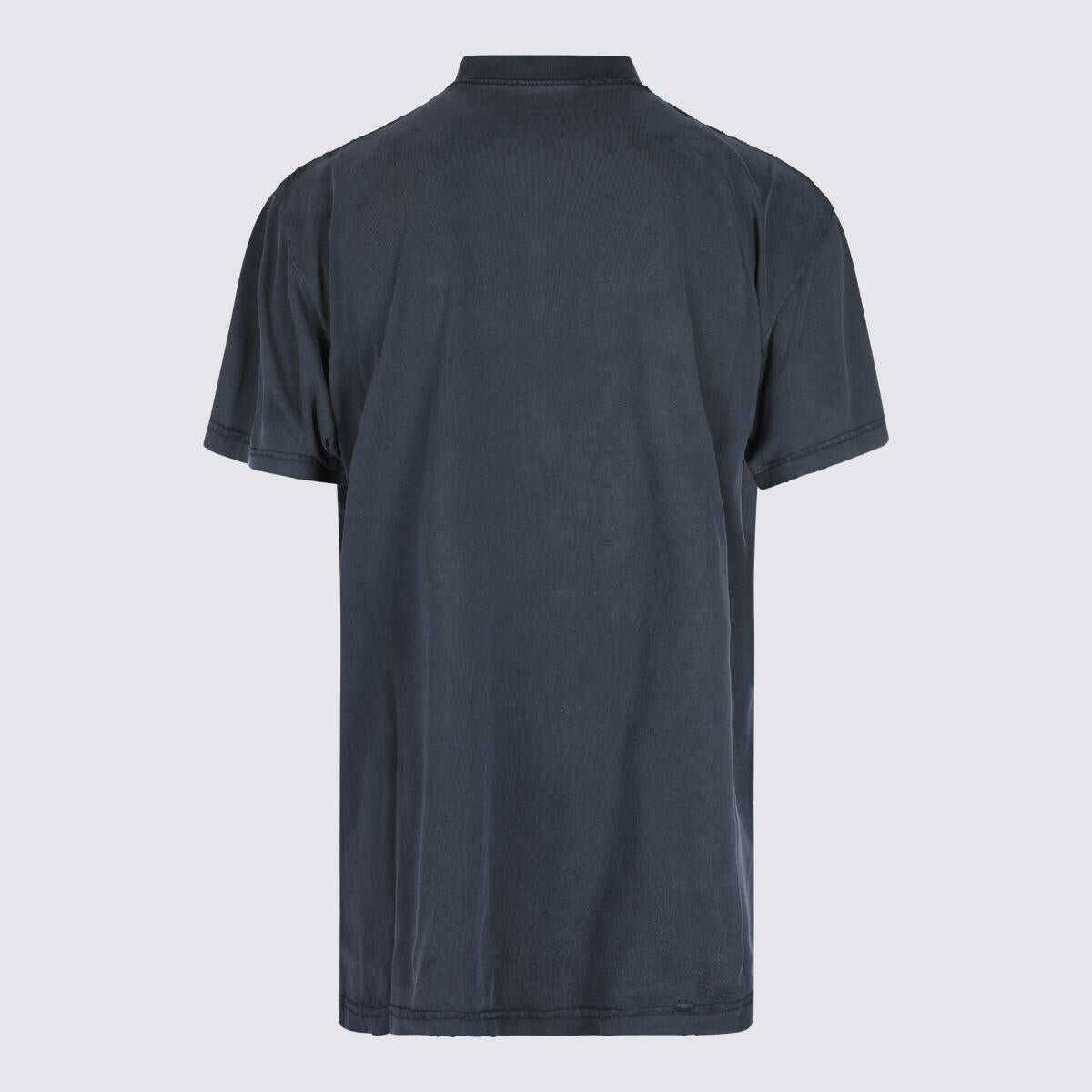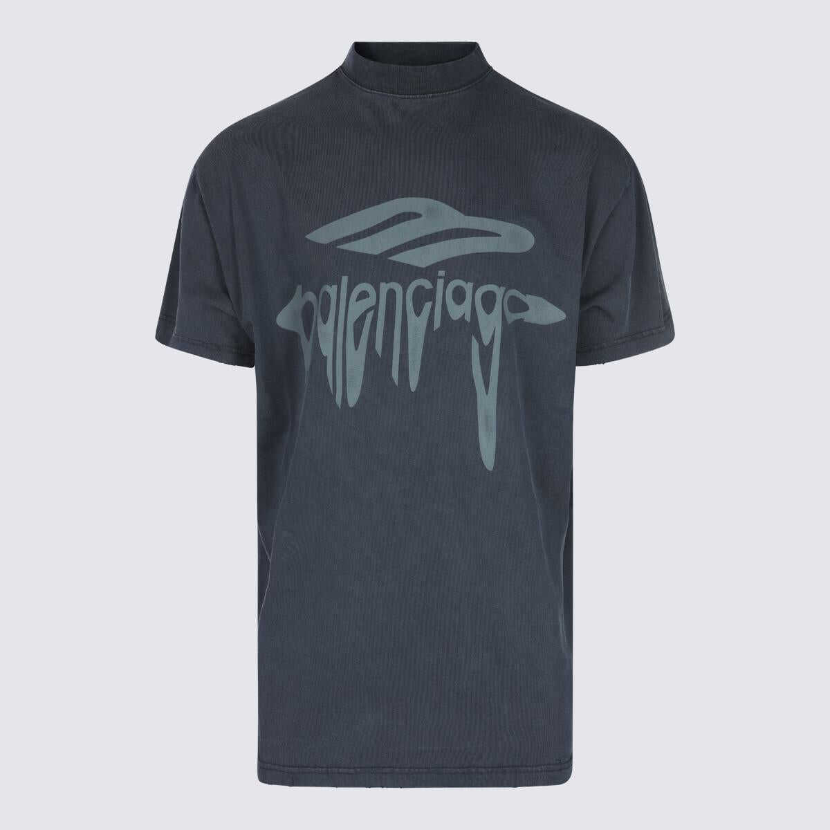 Dark blue cotton t-shirt from Balenciaga featuring round collar, short sleeves, frontal logo print and oversize vestibility.