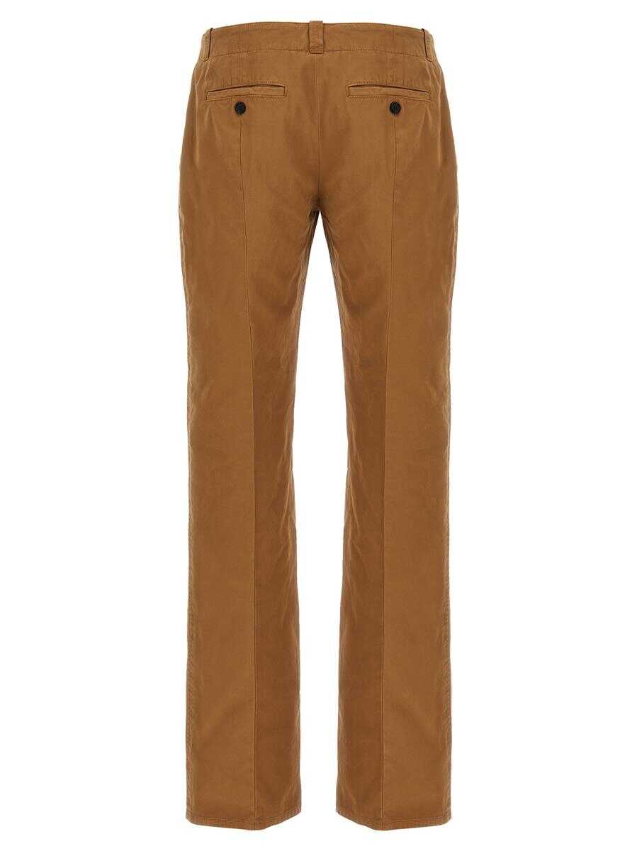 Garment-dyed pants in cotton yarns, chino model with low waist, straight leg, ironed pleat, zip and front button closure, pockets.