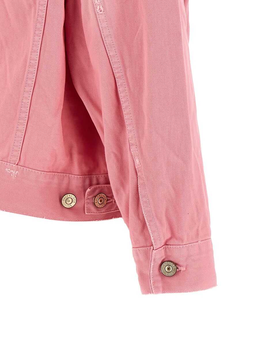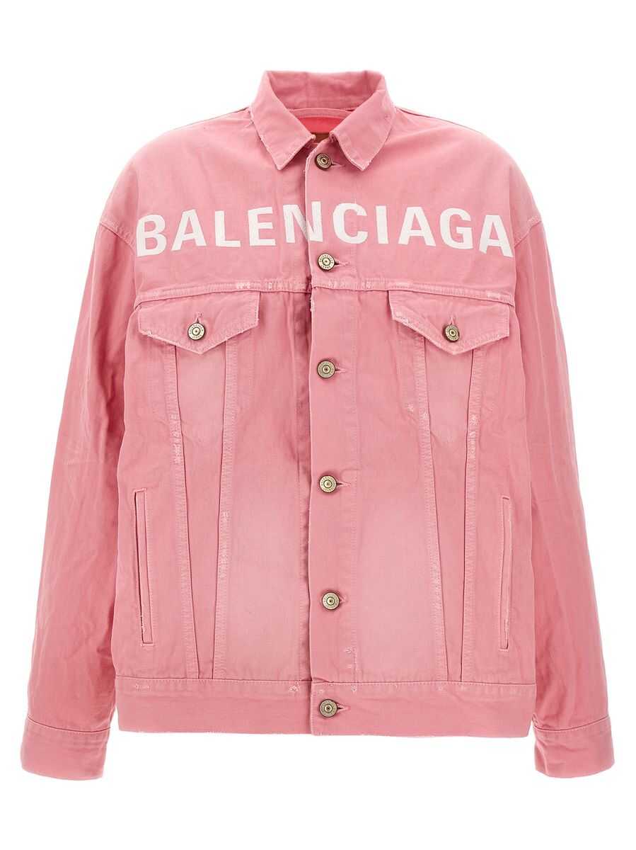 Pink cotton denim jacket from Balenciaga featuring long sleeves, shirt collar, frontal logo, buttons fastening and oversize vestibility.