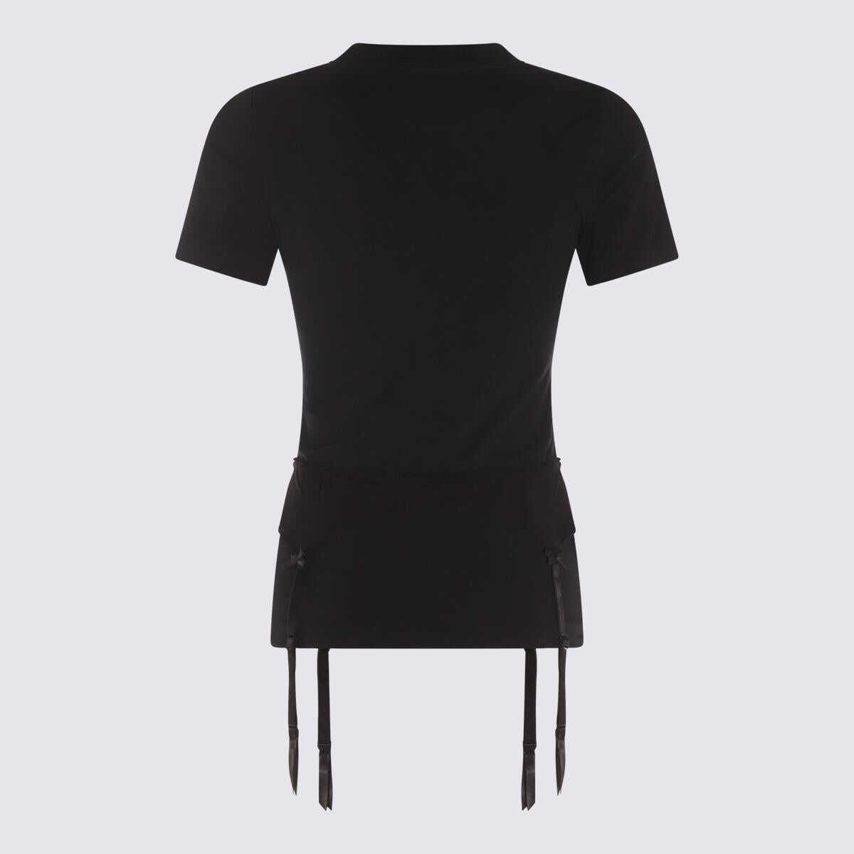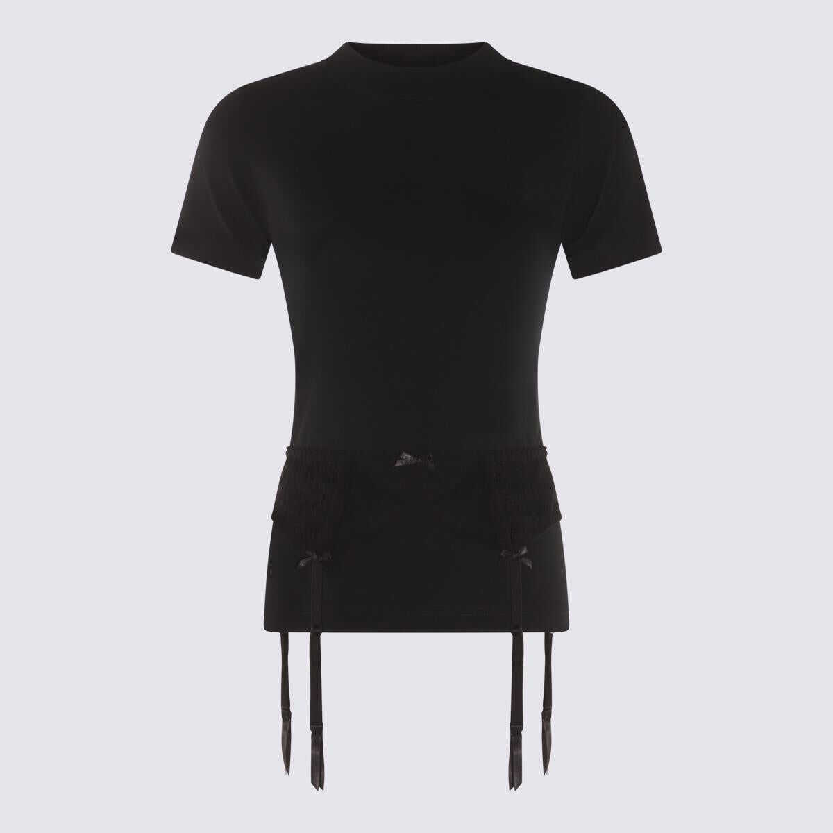 Black cotton t-shirt from Balenciaga featuring short sleeves, round collar and lateral drawstrings.