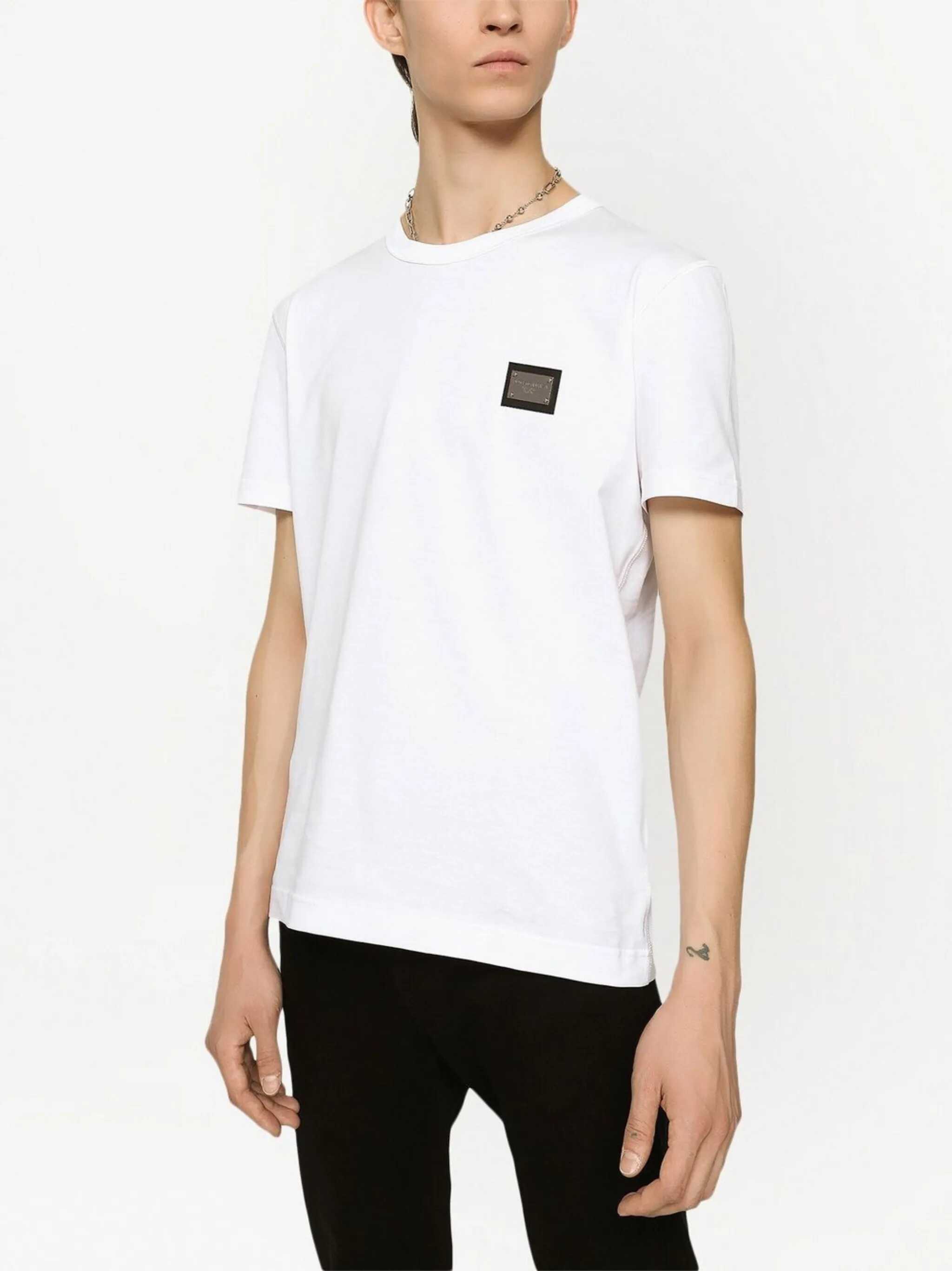White cotton t-shirt from Dolce&Gabbana featuring short sleeves, round collar, logo patch and regular vestibility.