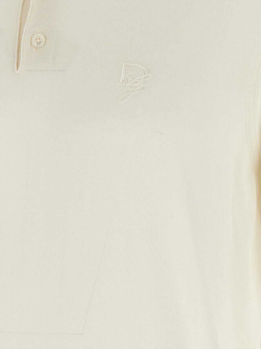 Silk knit polo shirt with front logo embroidery detail, collar and buttons, short sleeves