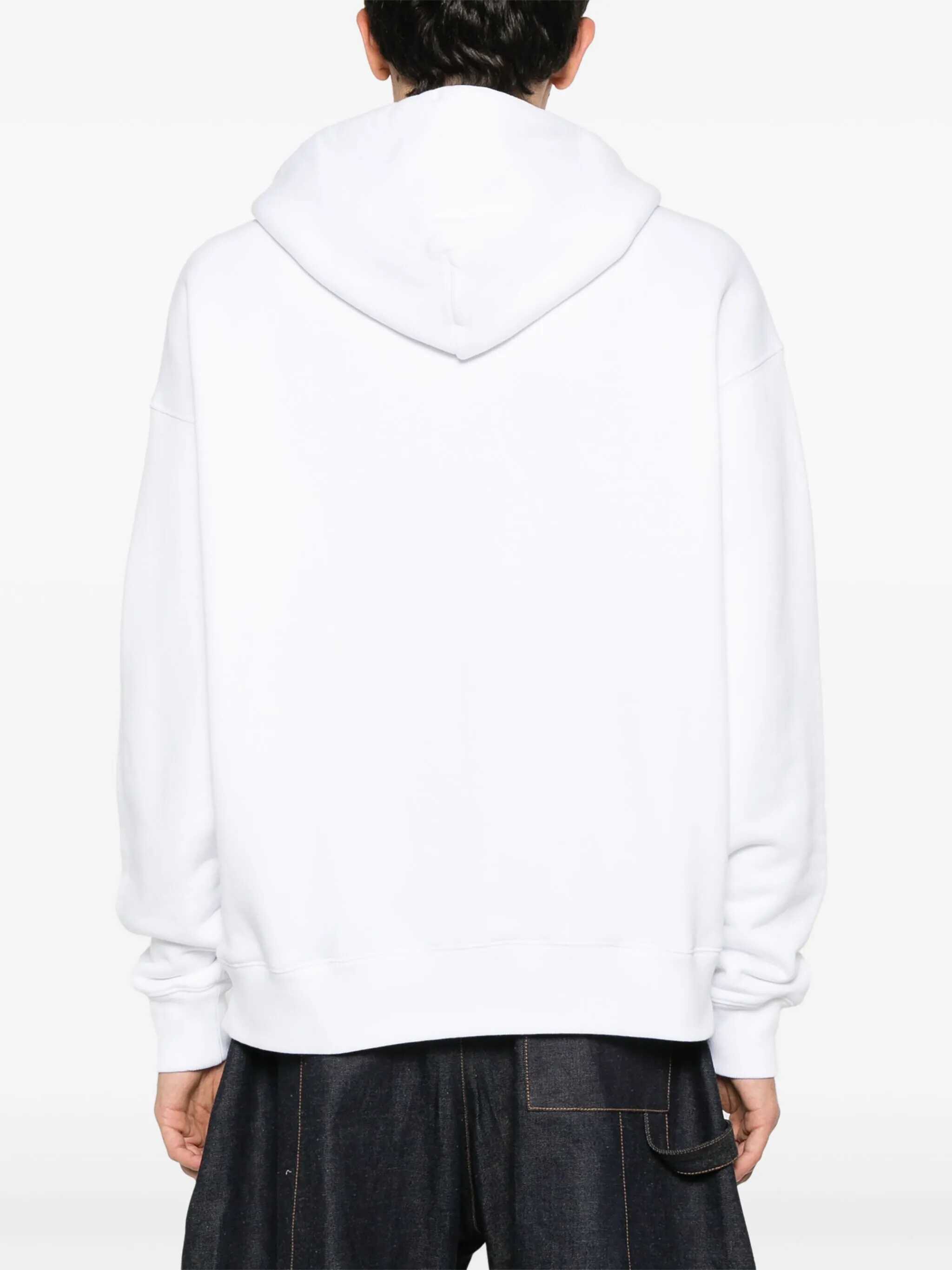 Long-sleeved sweatshirt. Drawstring hood. Ribbed hems. Single pocket on front. Big logo printed on the front.