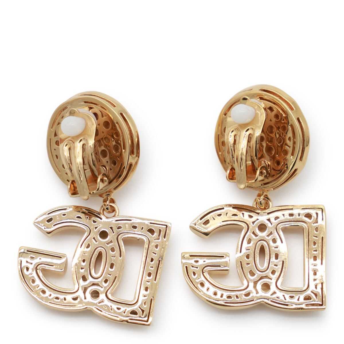 Gold metal earrings from Dolce&Gabbama featuring gold tone, pearl, logo and back fastening.