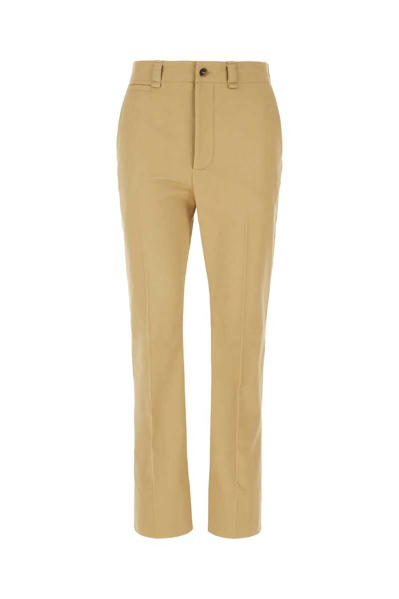 Saint Laurent's straight-leg pants crafted in beige cotton drill. Featuring button closure, belt loops, multiple pockets and central pressed crease.