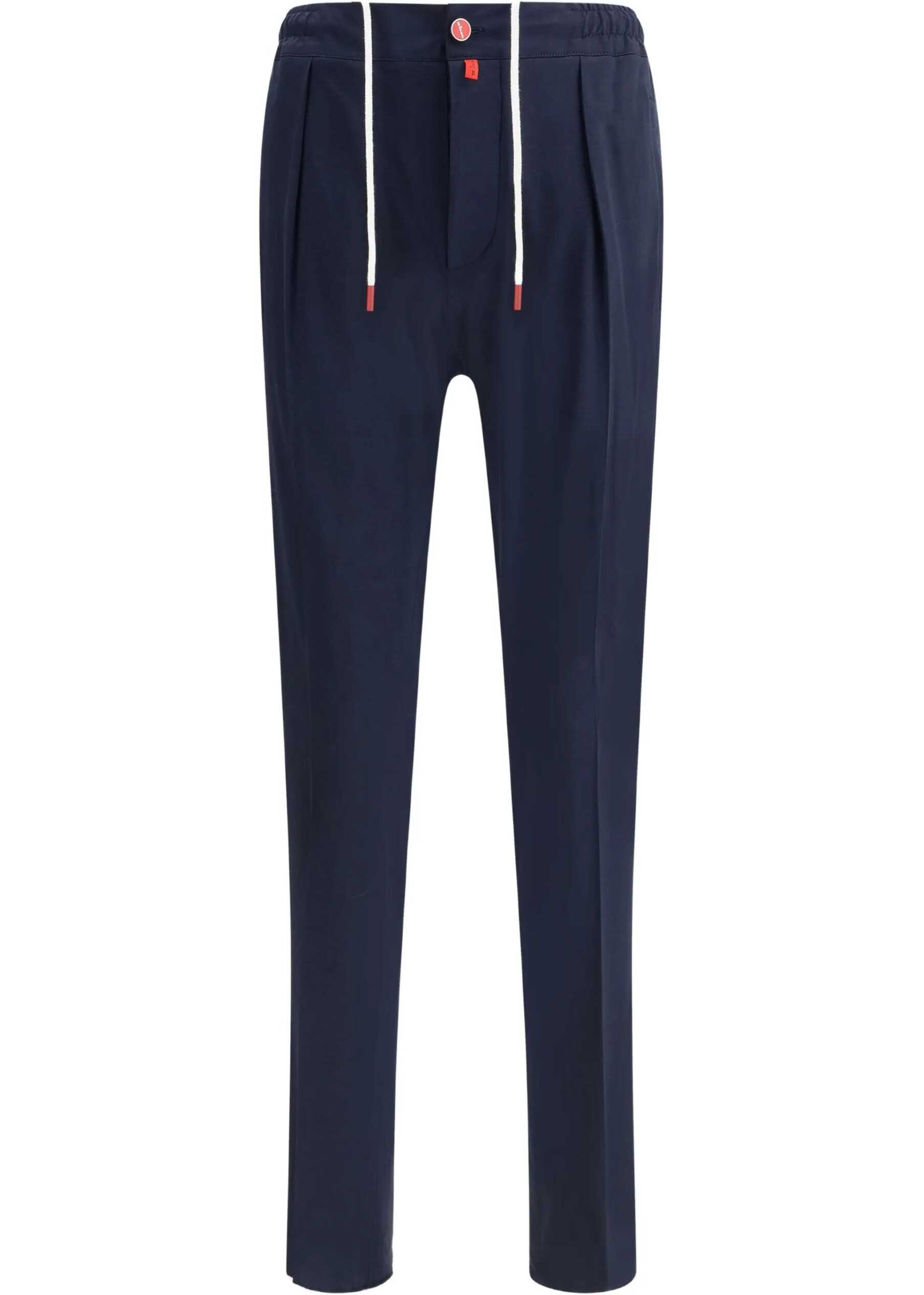 Cotton Pants by Kiton feature a logoed button front closure and an adjustable drawstring elastic waistband for a comfortable, customizable fit. They feature two side welt pockets, two back slit pockets, and an iconic monogram patch applied to the back, adding a distinctive and classy touch to the design.
